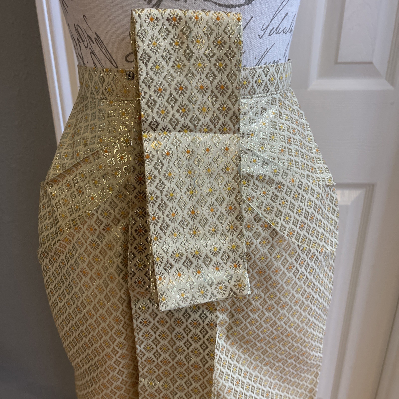 как выглядит Traditional Skirt Lao Thai Khmer Gold Size XS Front Zip And Clasp and top фото