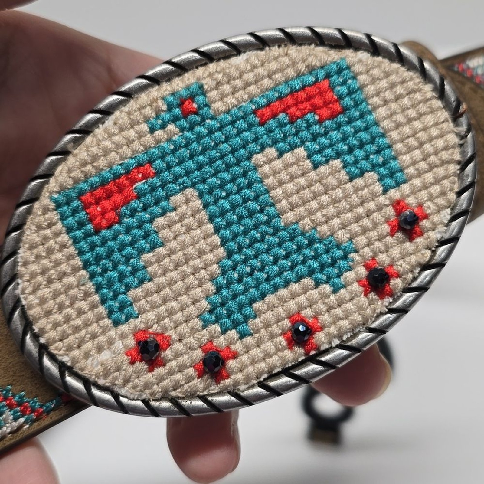 как выглядит Ariat Girls Embroidered Thunderbird Buckle Belt Brown фото