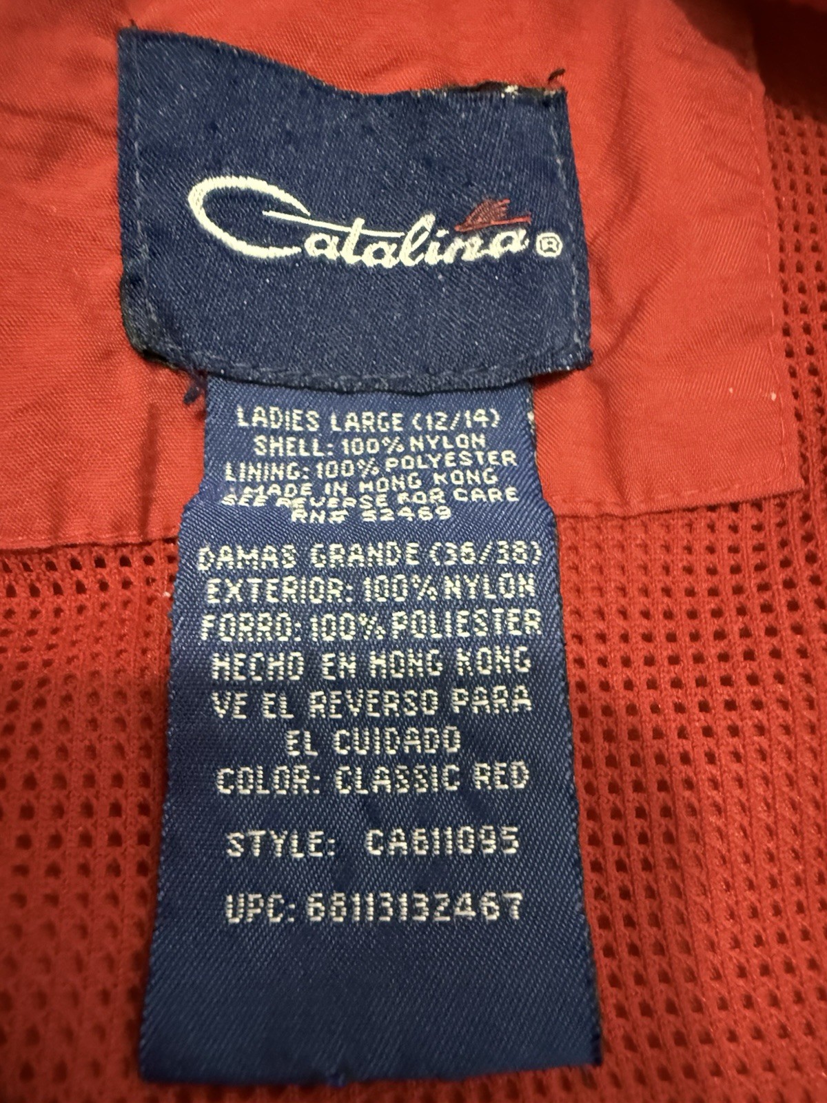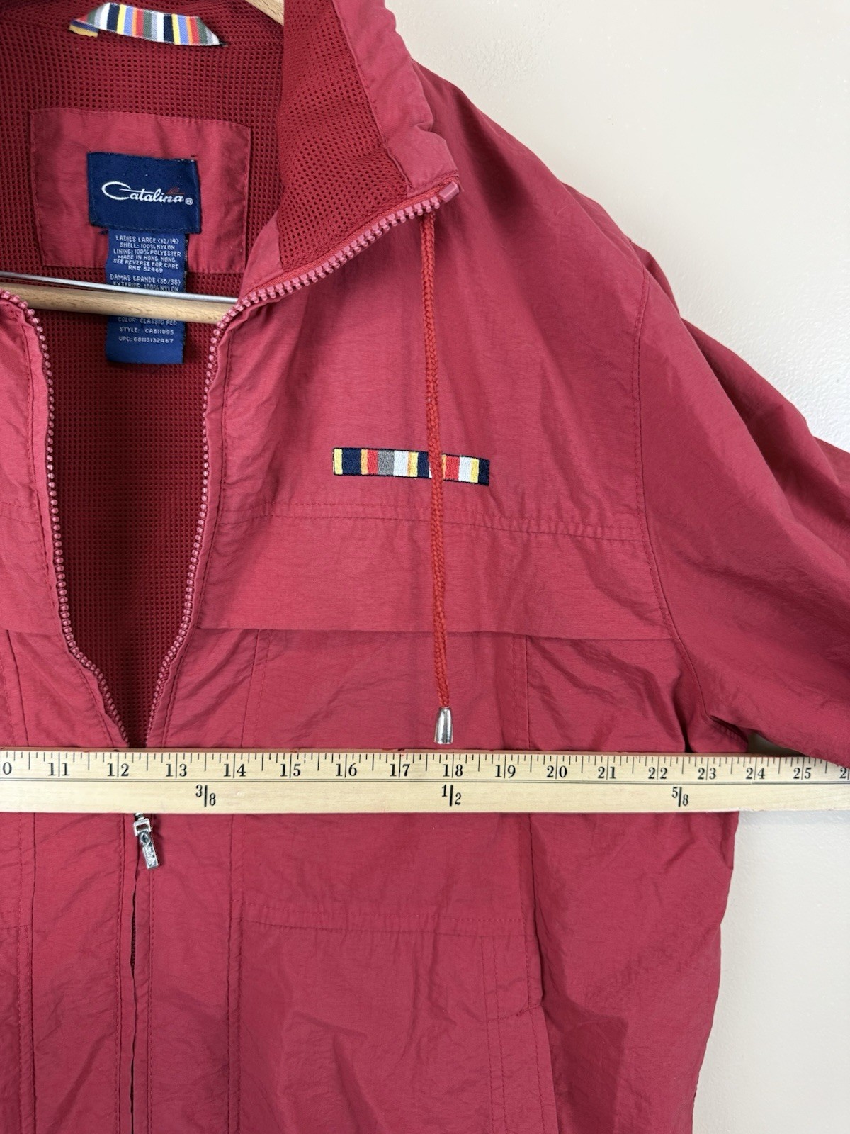 VTG Catalina C-Tek Red Women s Windbreaker Jacket Full-Zip Y2K Size L