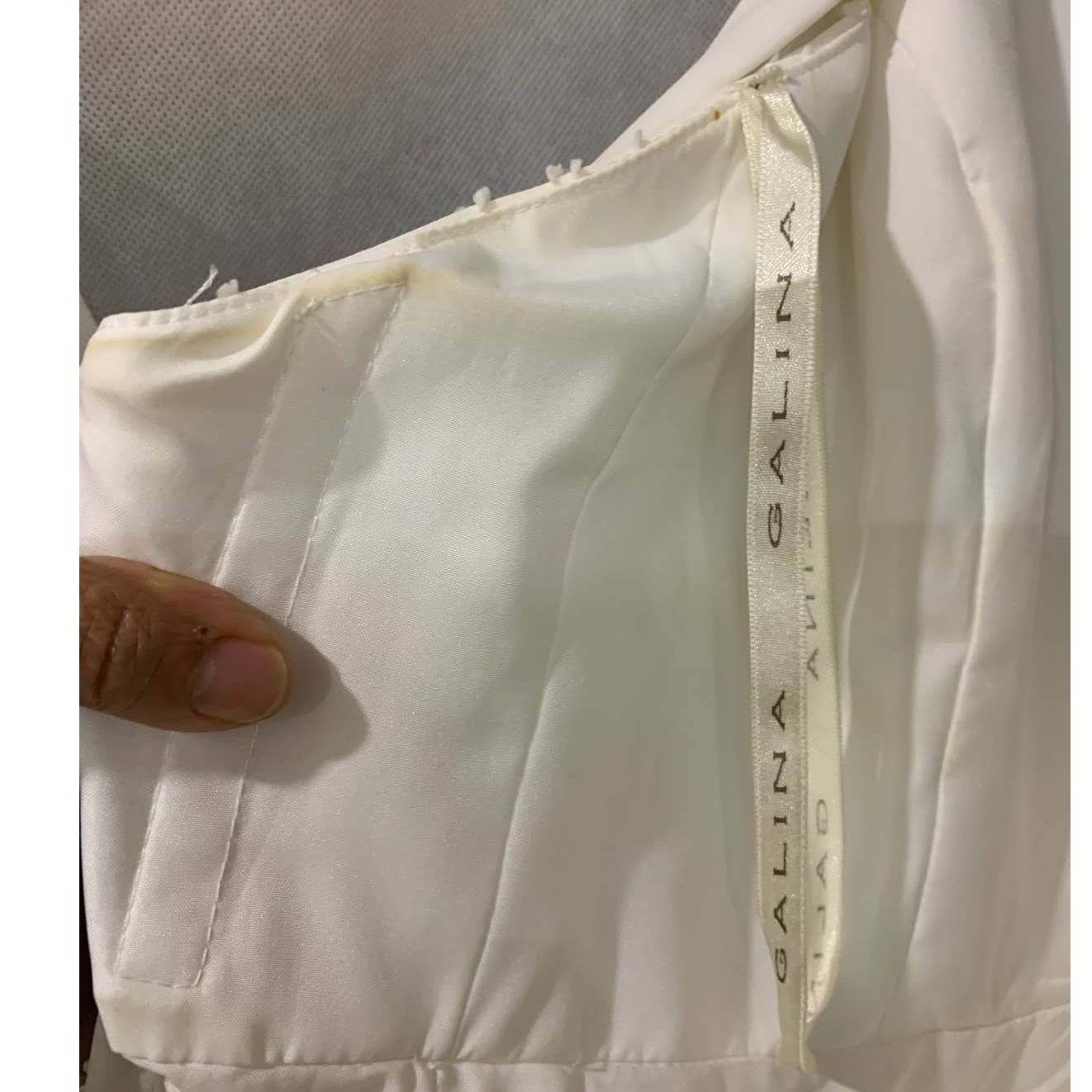 как выглядит Davids bridals Galina halter ivory tie back wedding dress needs dry cleaning фото