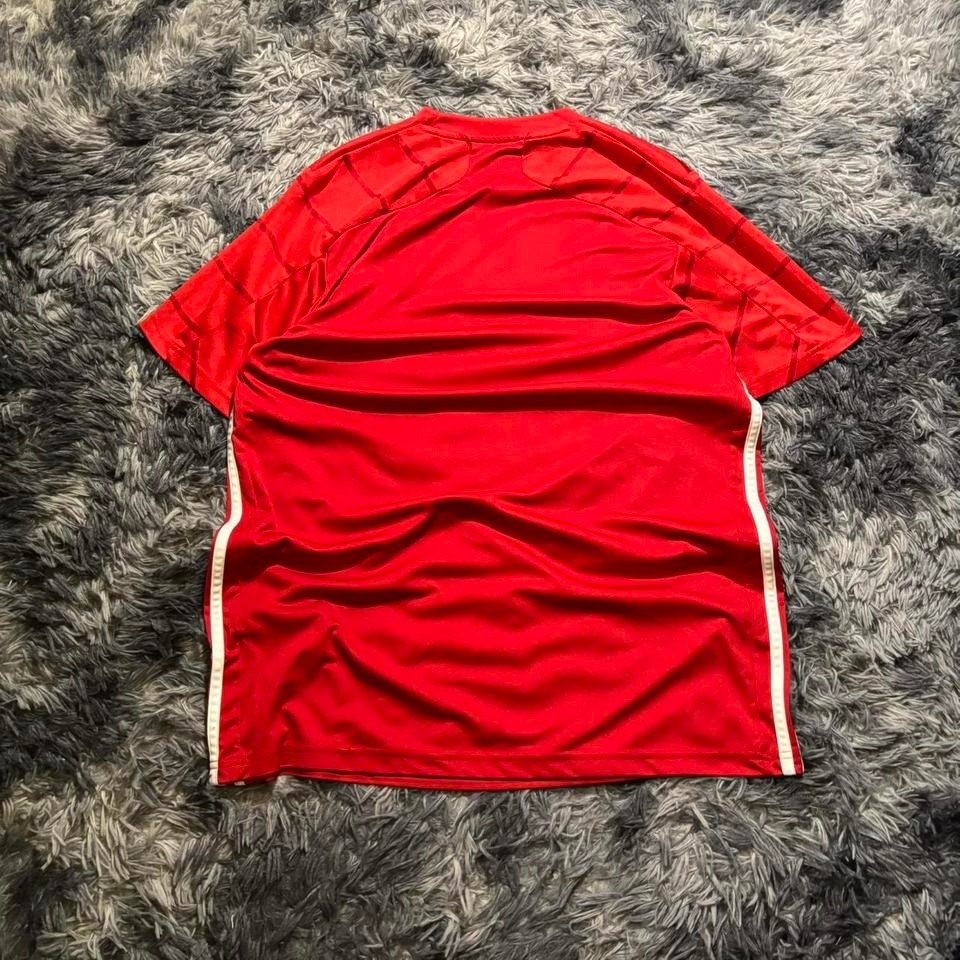как выглядит Red And White Striped Adidas Athletic Shirt фото