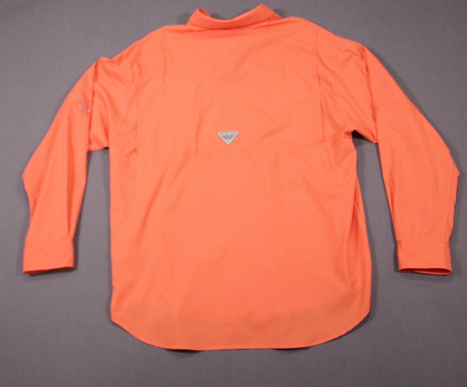 как выглядит Columbia PFG Omni-Shade Long Sleeve Fishing Shirt Orange Vented Roll Sleeve Sz L фото