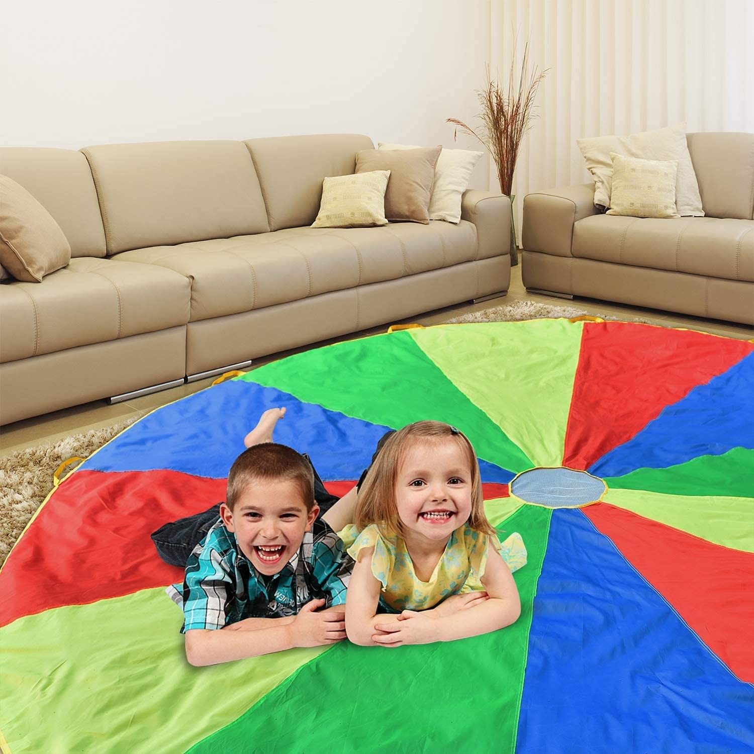 Parachute for Kids with 12 Handles Multi-Purpose Waterproof 10 ft Play Parach...