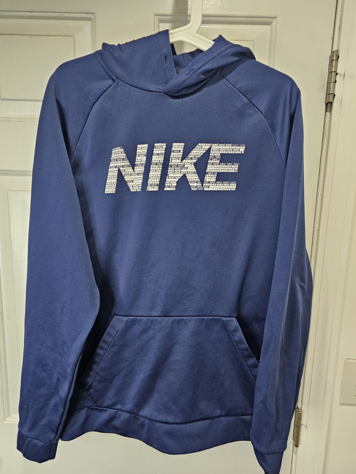 NIKE Dri-Fit Pullover Hoodie Sweatshirt Mens Medium Navy Blue Spellout