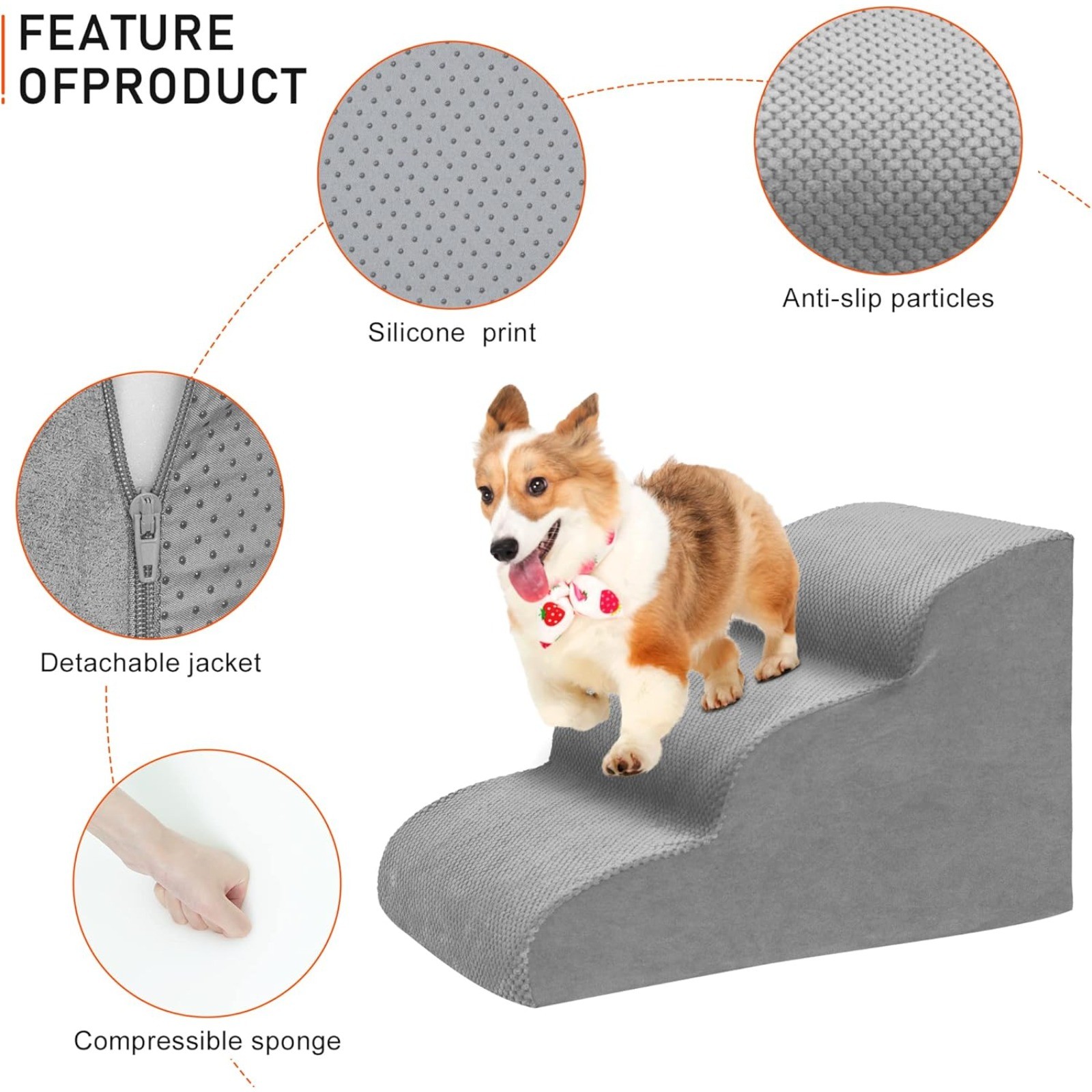 Non-Slip Foam Dog Stairs for High Bed Couch 3 Steps Small Injured Older Pet Ramp