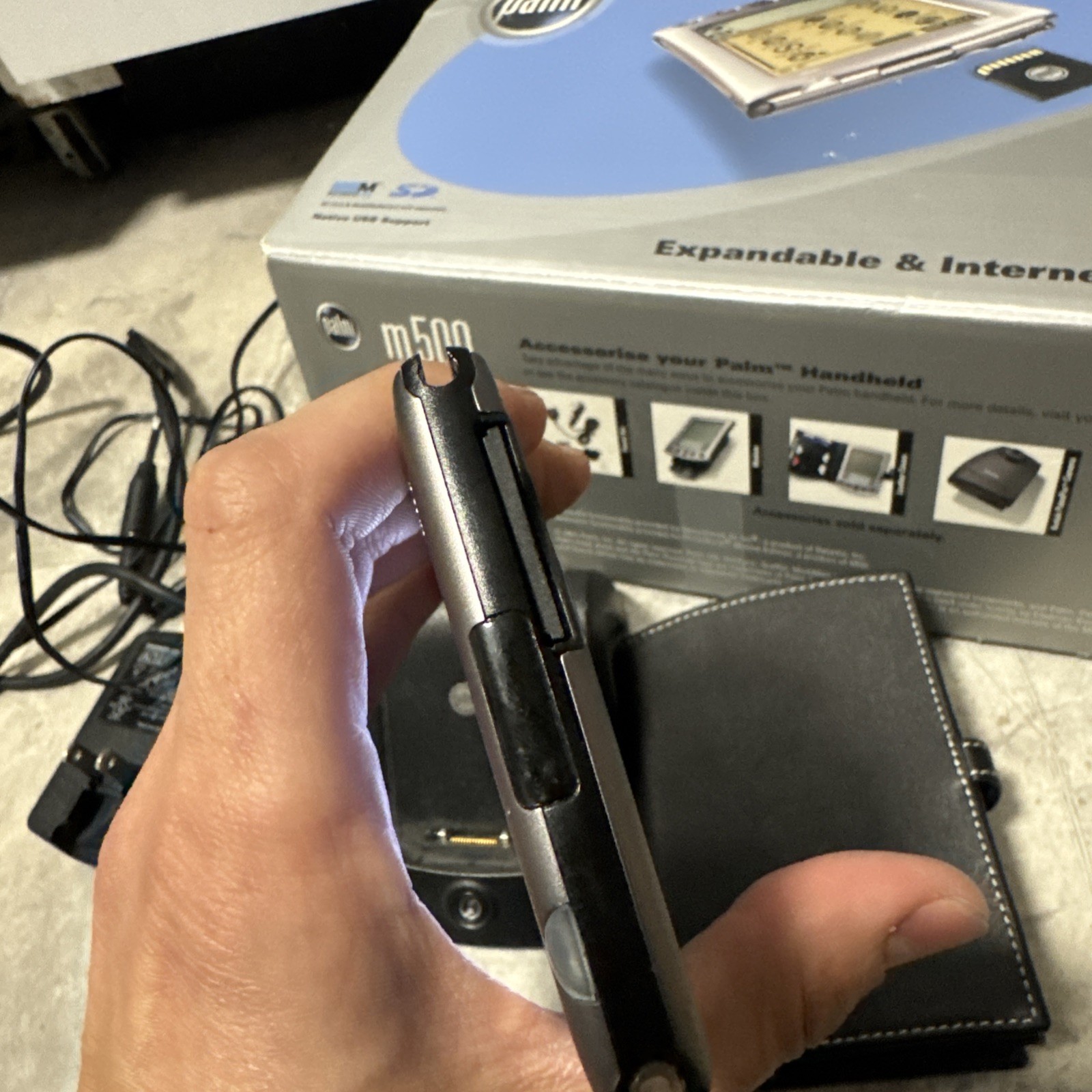 как выглядит Palm Pilot M-515 power-supplied cradle stylus and leather case WORKING фото