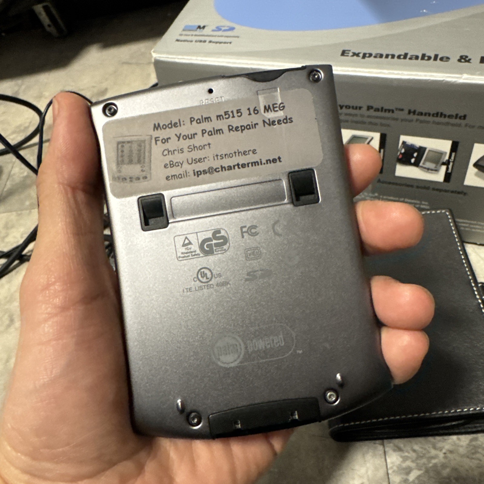 Palm Pilot M-515 power-supplied cradle stylus and leather case WORKING