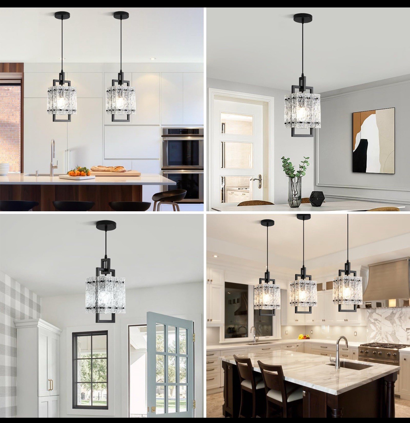 Modern Pendant Lights Kitchen Island 2 Pack Matte Black Pendant Lights Water ...