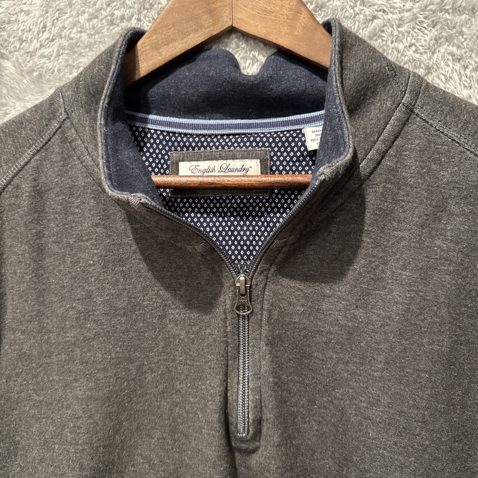 English Laundry Pullover Men's XL Gray 1/4 Zip Cotton Blend Knit Designer