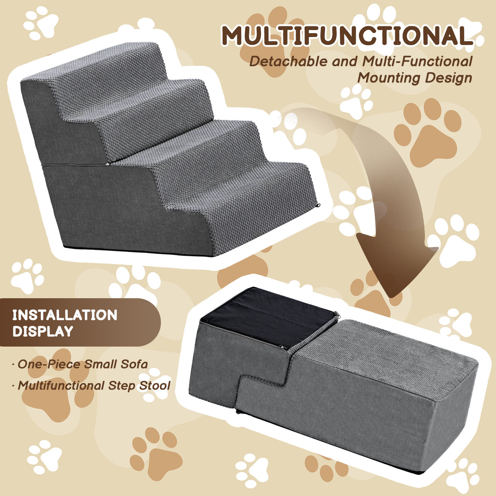 4-5Steps Foam Pet Stairs for Bed or Couch Detachable Portable for Indoor/Outdoor