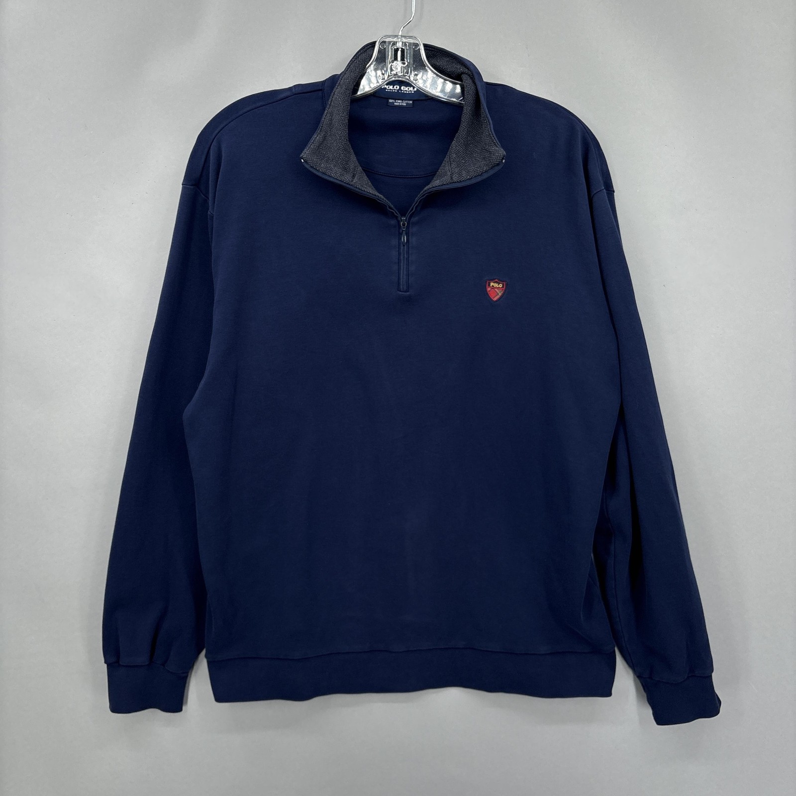 Vintage Polo Ralph Lauren Pullover Mens XL Blue Quarter Zip Shield Crest Golf