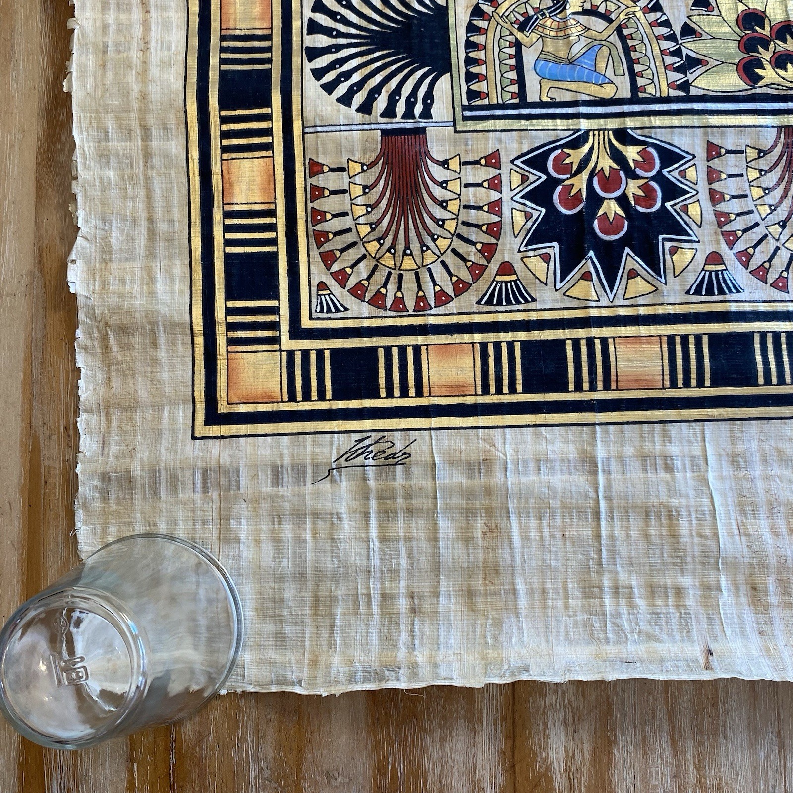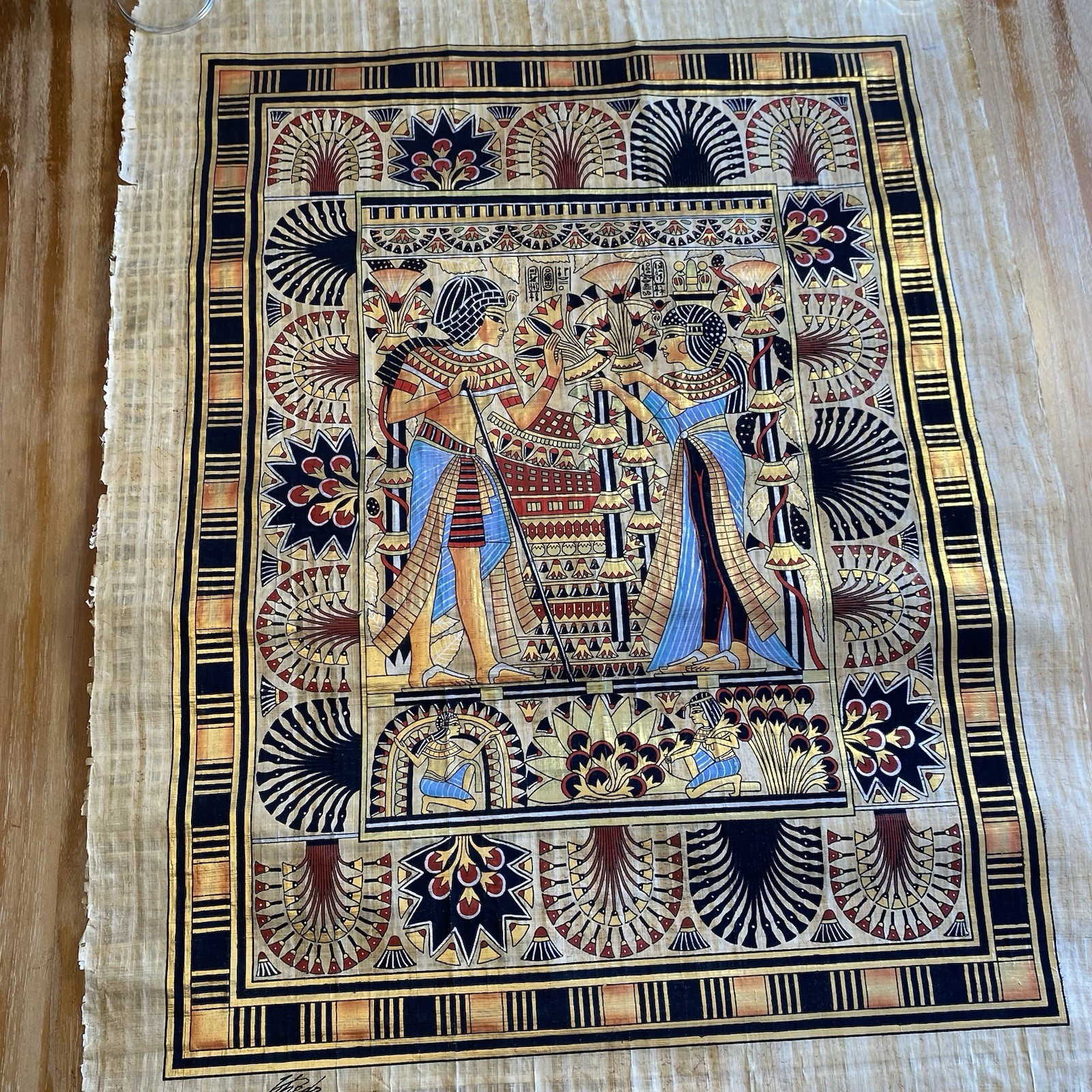 Authentic Egyptian Papyrus Painting Handcrafted Artwork Pharaoh Queen 36 X 25