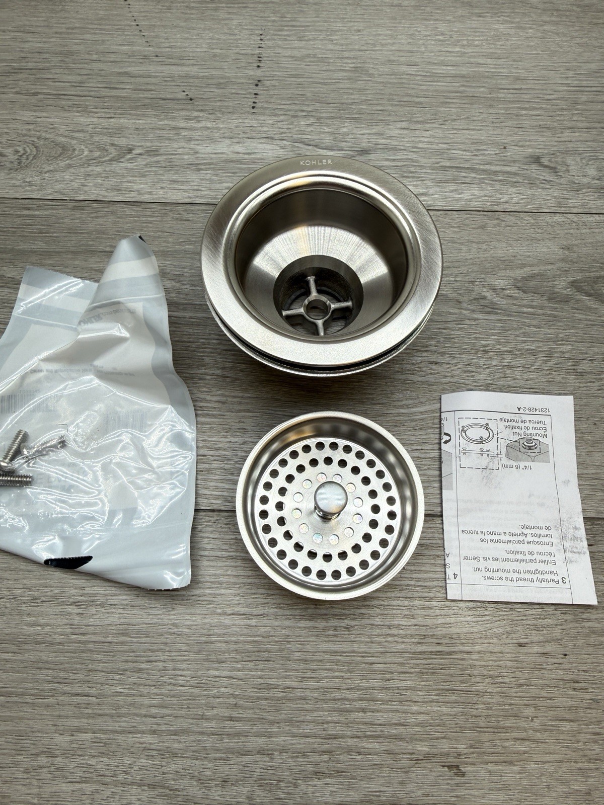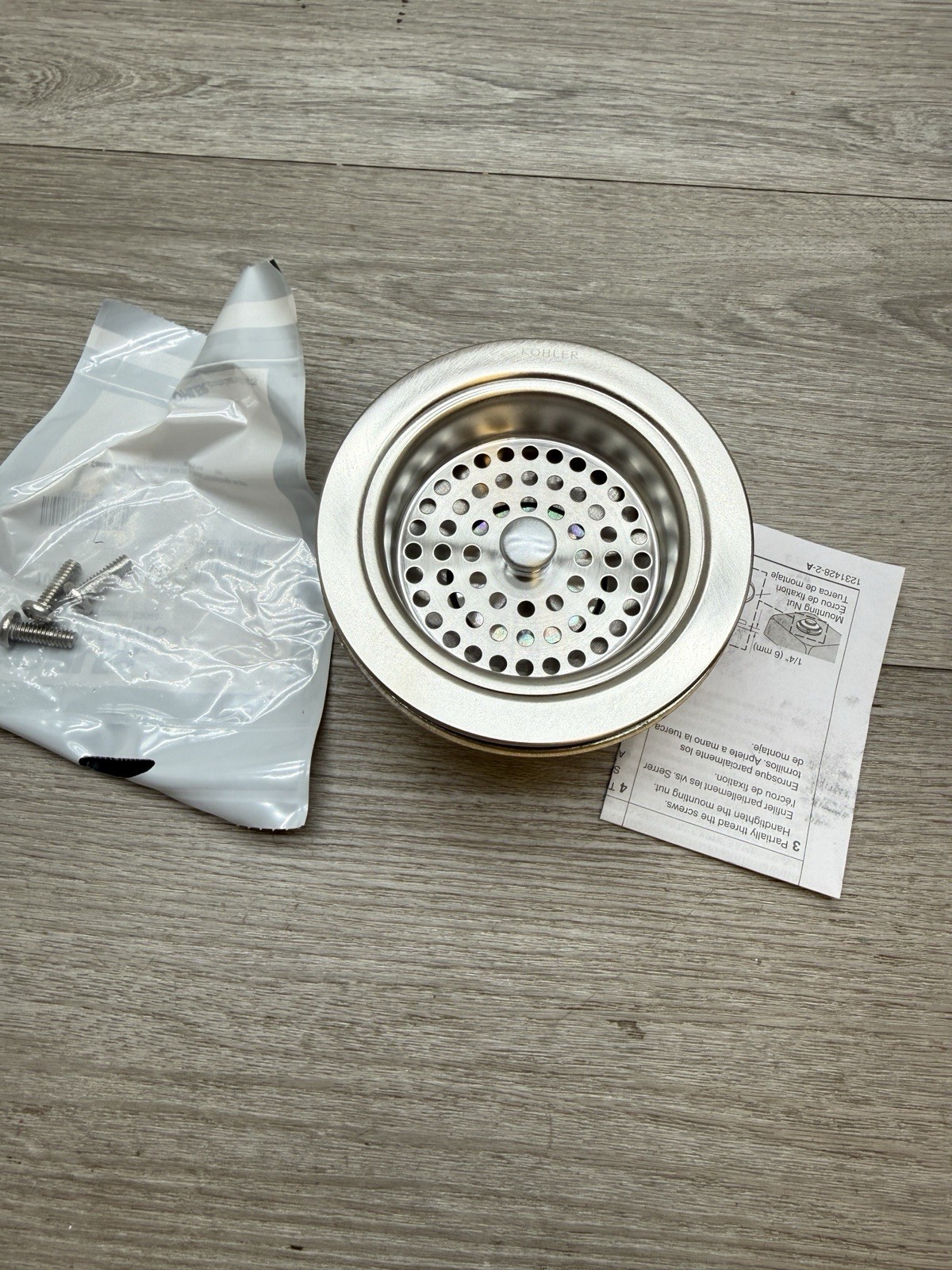 как выглядит Kohler K-8799-VS Duostrainer Sink Strainer Round Brass Vibrant Stainless Steel фото