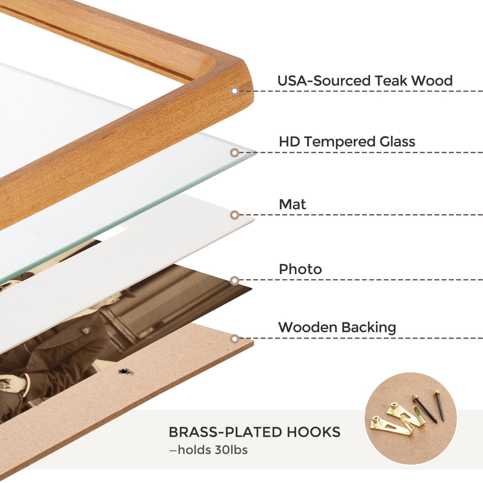 как выглядит 9x12 Teak Wood Picture Frame w/ Mat for 6x8 Photo/Diploma - Wall/Tabletop Displa фото