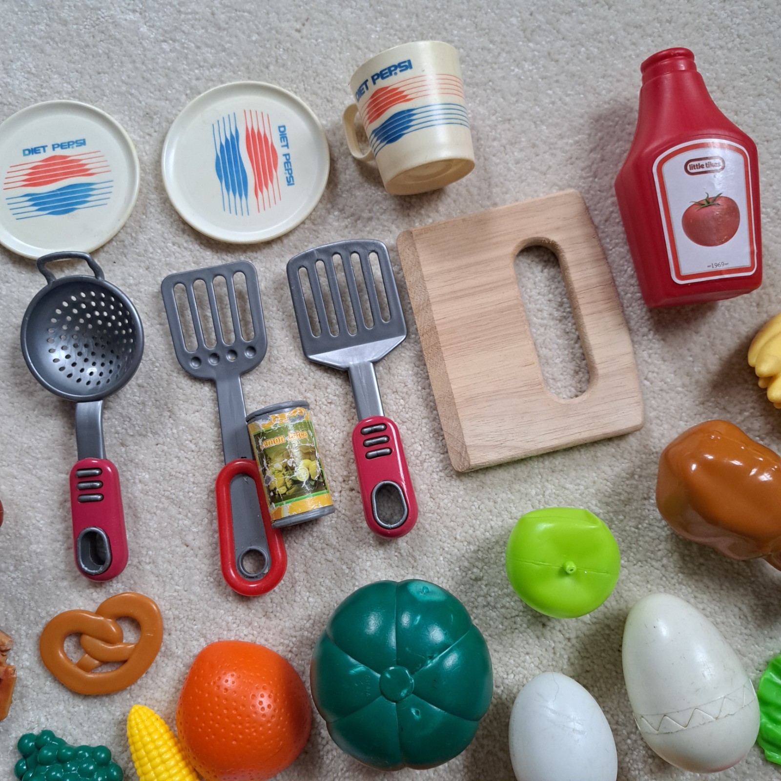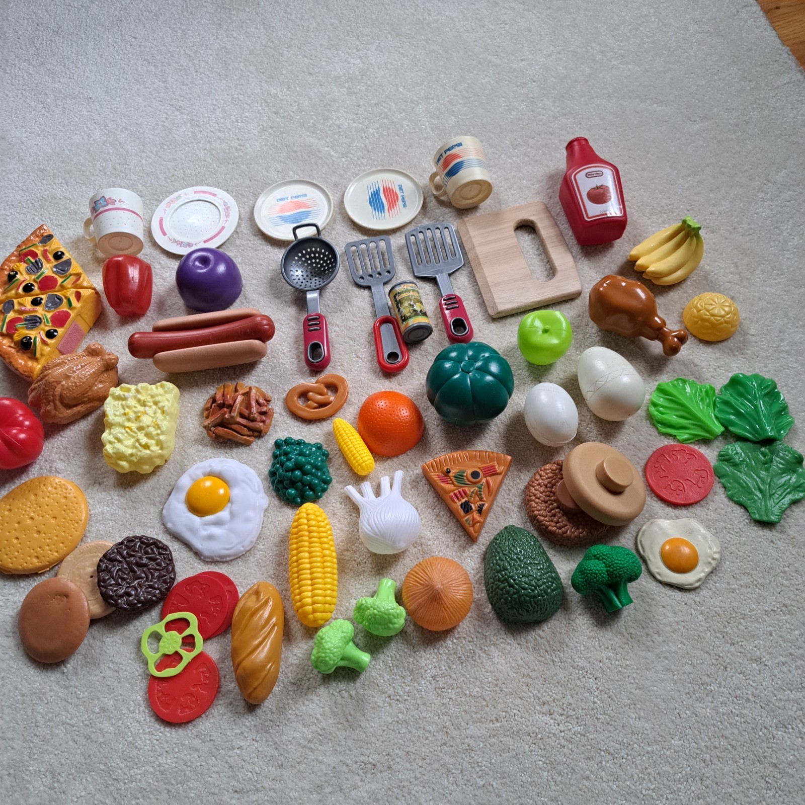Pretend Play Plastic Fake Food Veggies, Fruits, Sweets And Burger, Large Lot