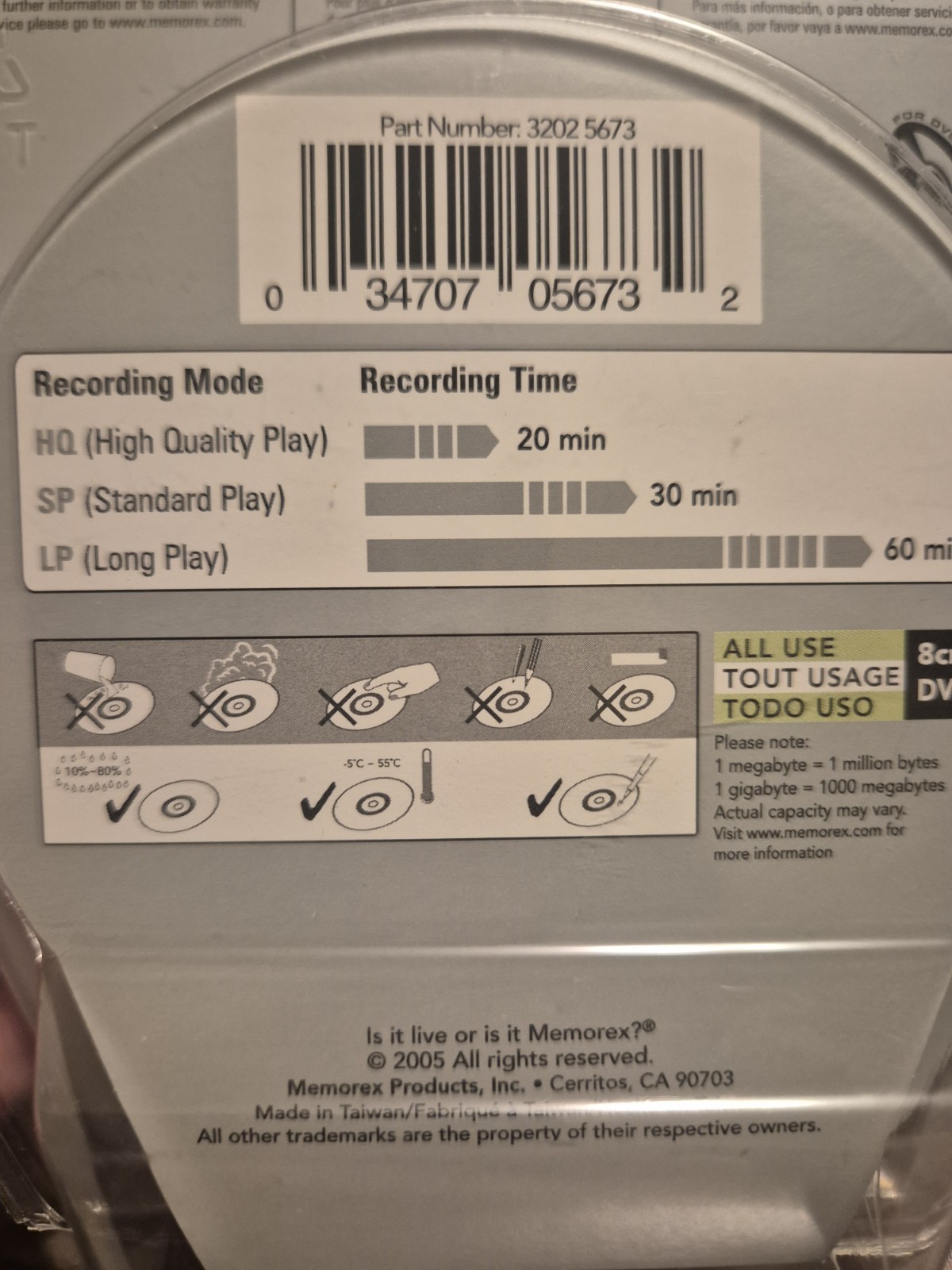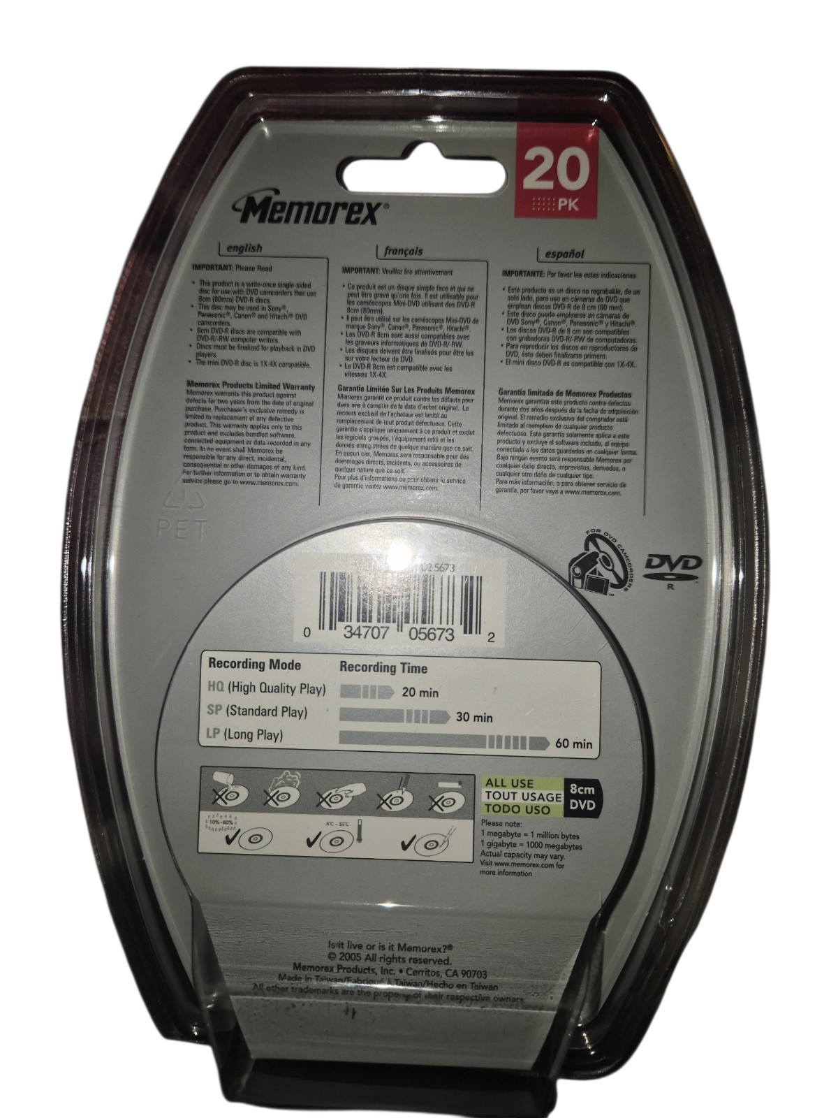 Memorex MINI DVD-R 1.4 GB 30 Min Single Sided 20 Pack New Sealed 2005