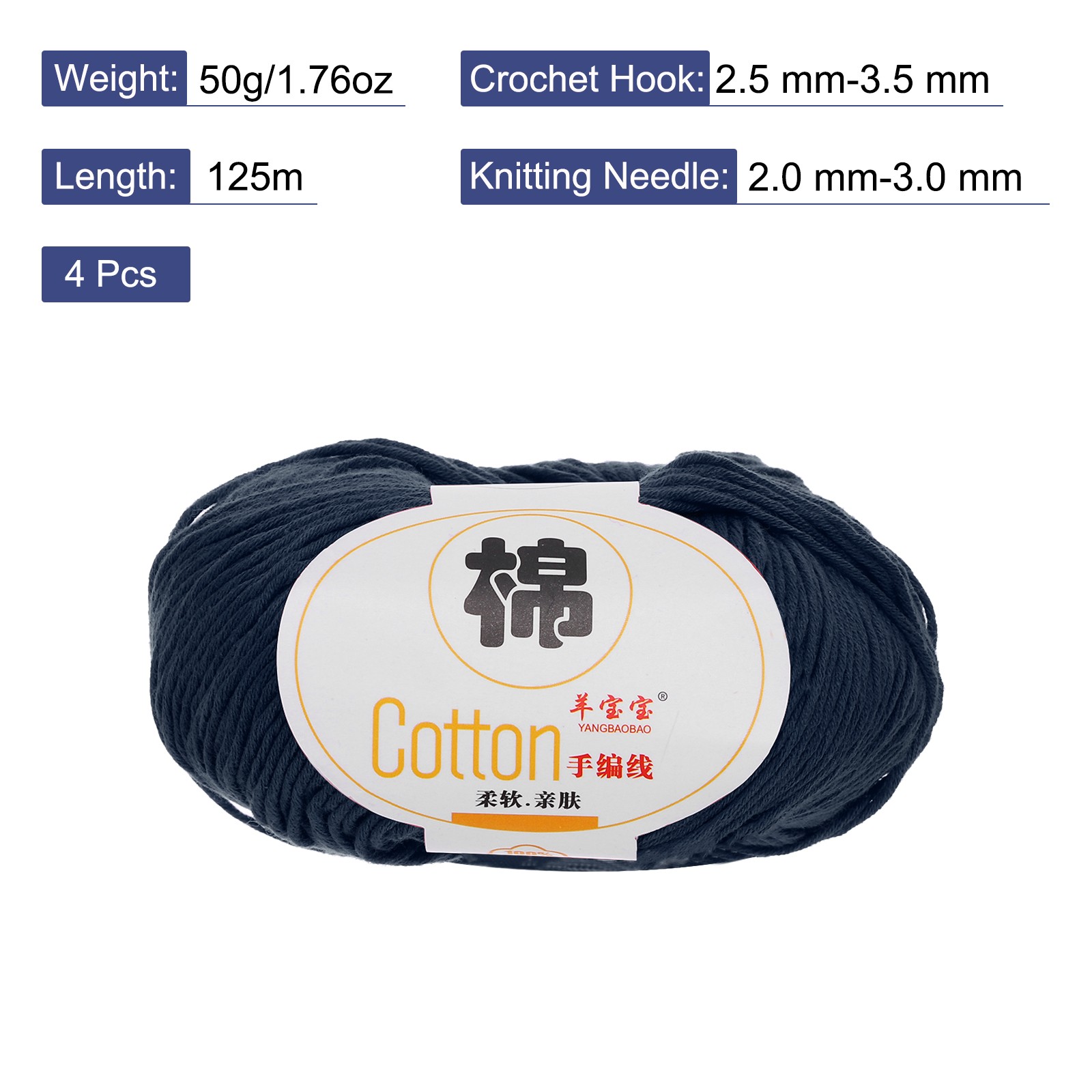 Cotton Yarn,Soft Knitting Yarn 4 Packages of 200g/7.05oz/ Navy Blue