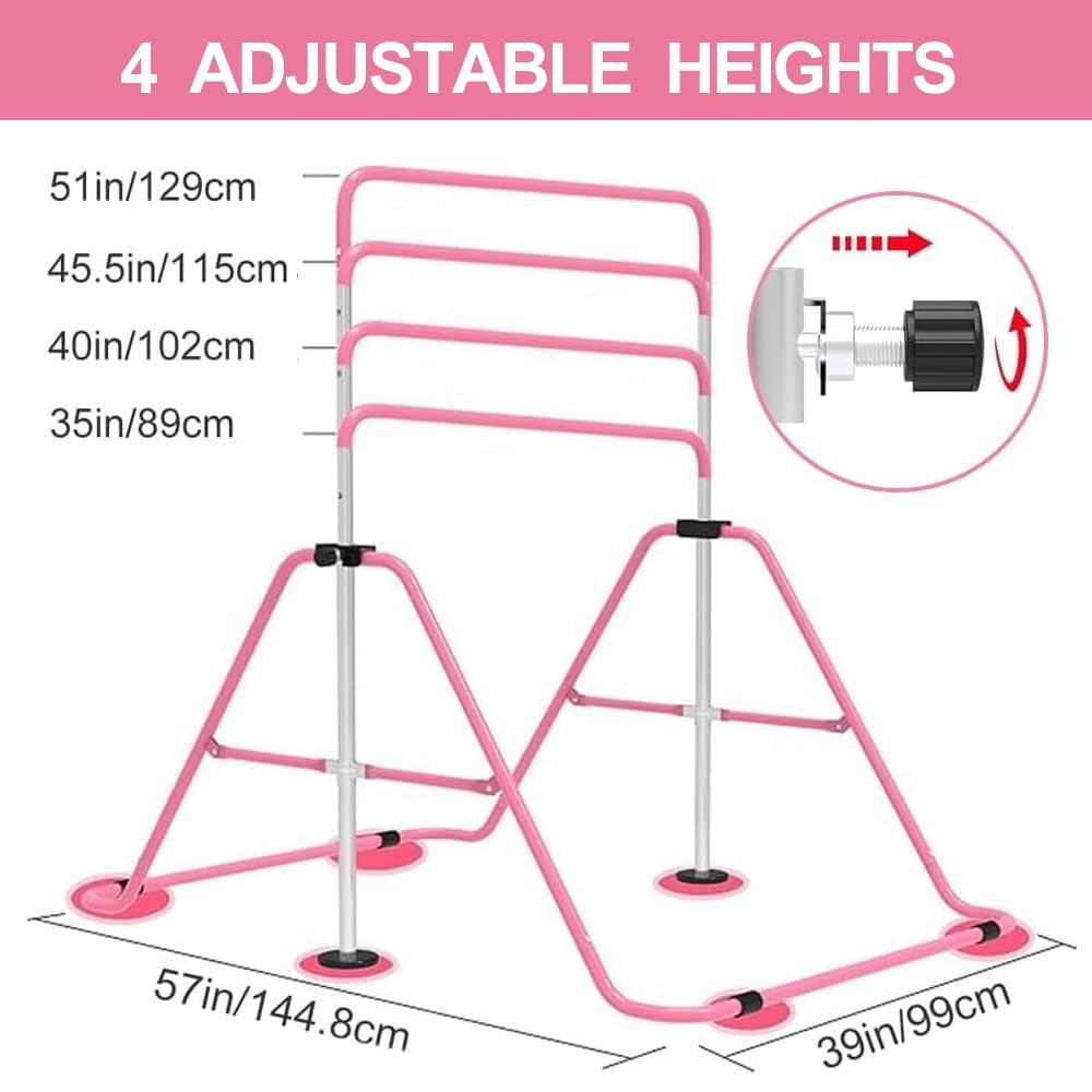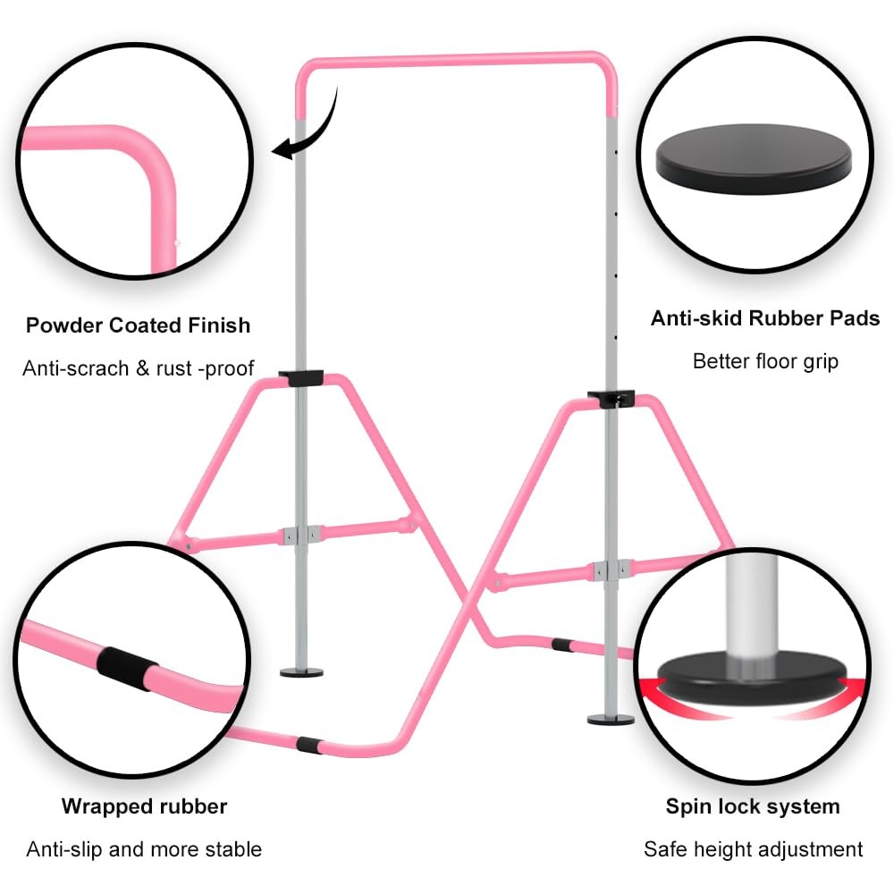 Gymnastics Bar for Kids, Adjustable Height Gymnastic Horizontal Bars with Mat...