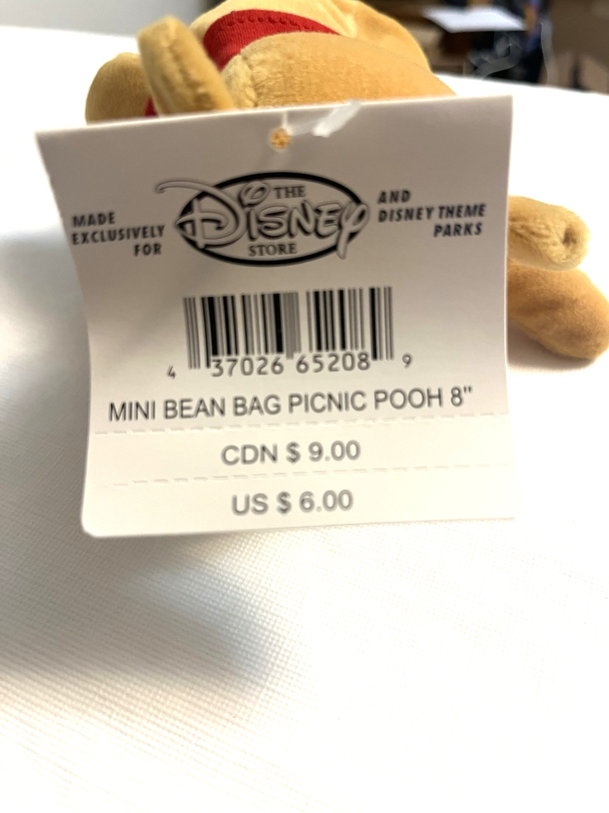 • Disney Store WINNIE The POOH - Picnic Pooh 8" Mini Bean Bag - Vintage