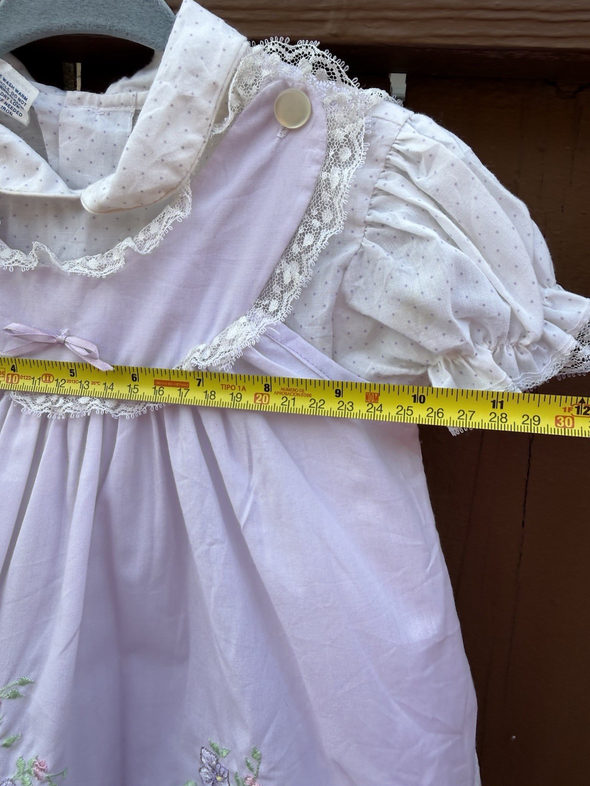 Vintage Cradle Togs Baby Heirloom Lavender Lace Floral Embroidered Dress 9-12M