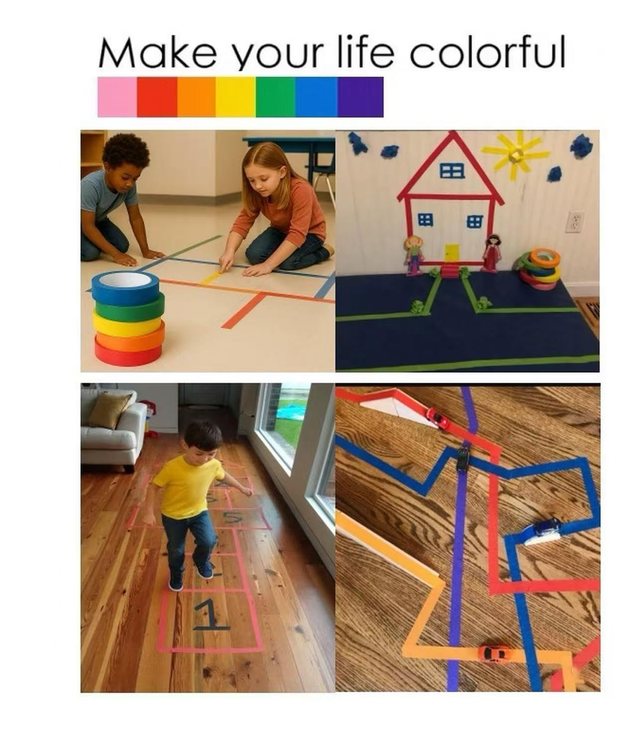 Colored Masking Tape Painters Tape 7 Roll - Masking Tape 1 Inch X 72 Ft Total 5