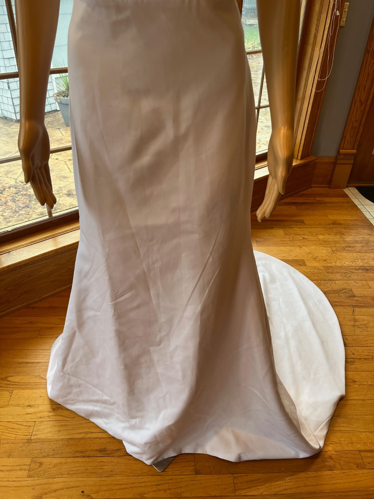как выглядит White Matte Satin Sleeveless Tank Fit Flared Wedding Gown Bridal Dress Size 8 фото