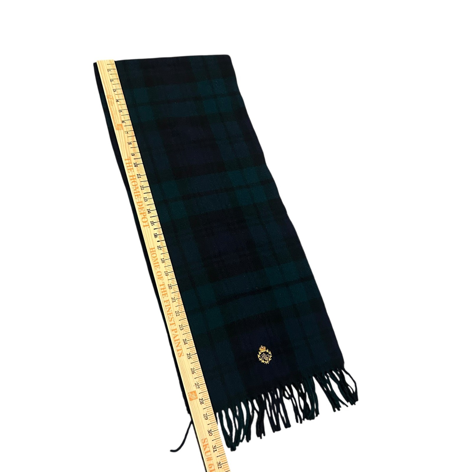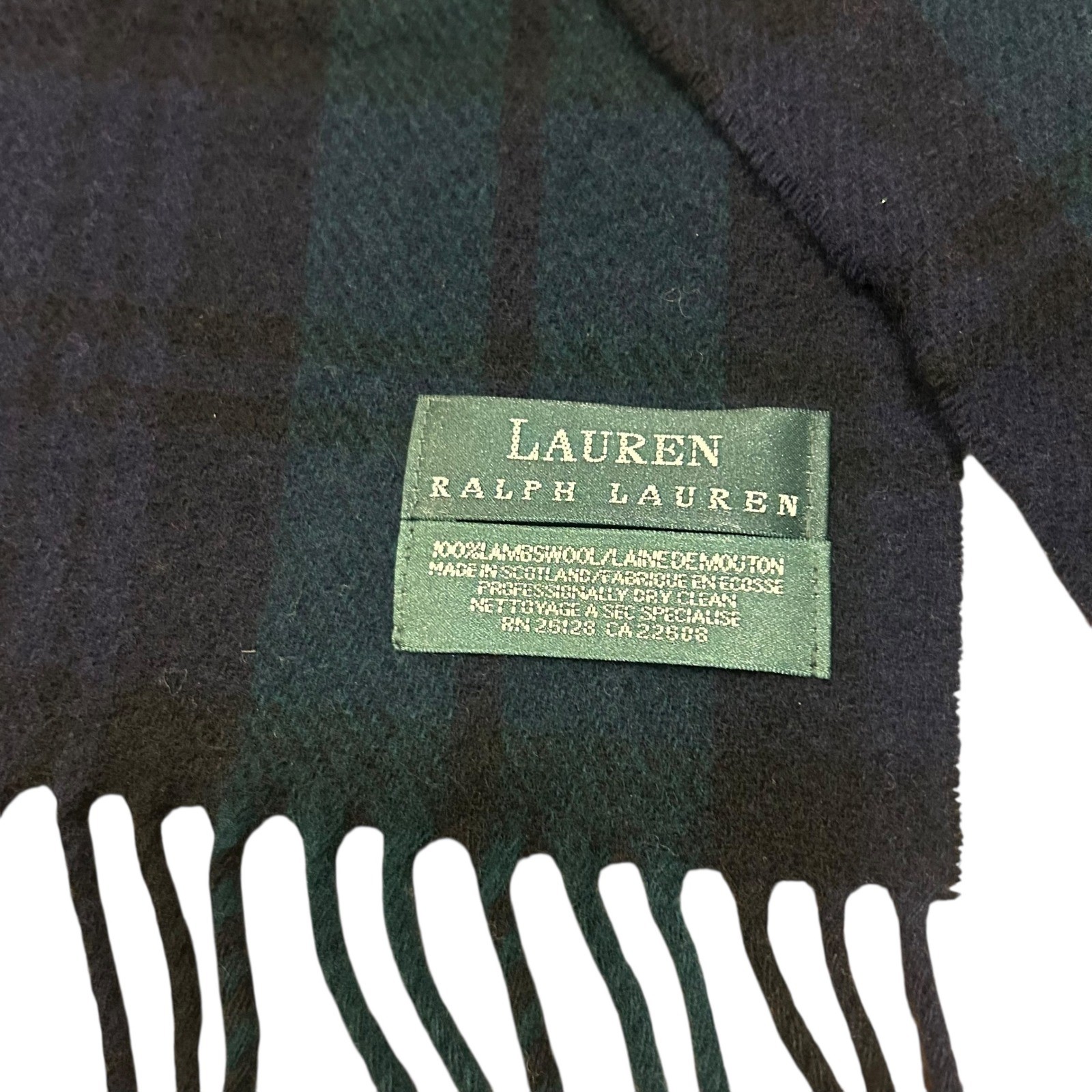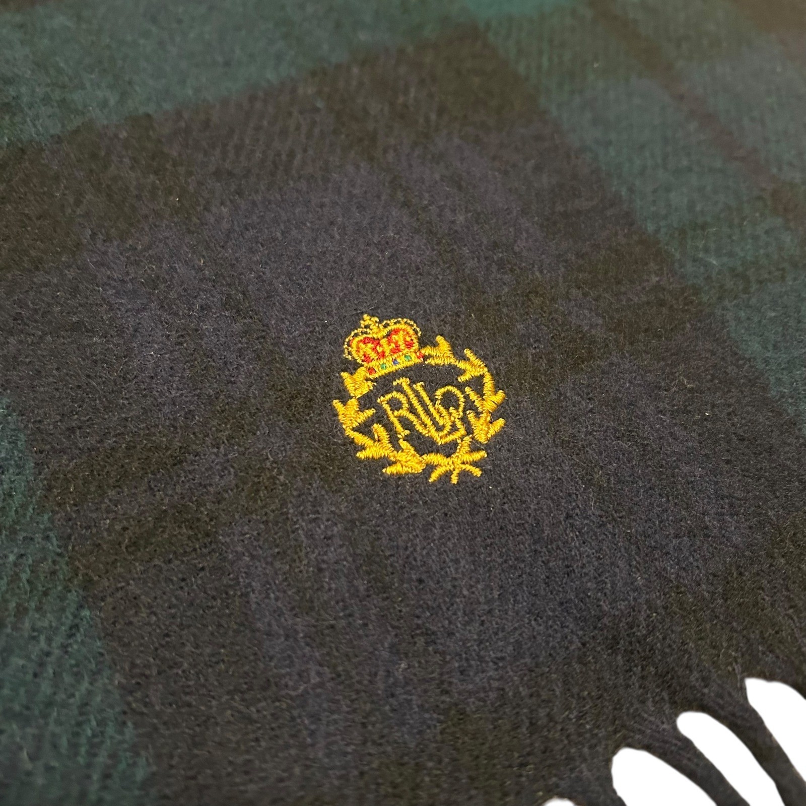 как выглядит VTG Lauren Ralph Lauren Blue Green Plaid Crest Lambswool Scarf Scotland фото