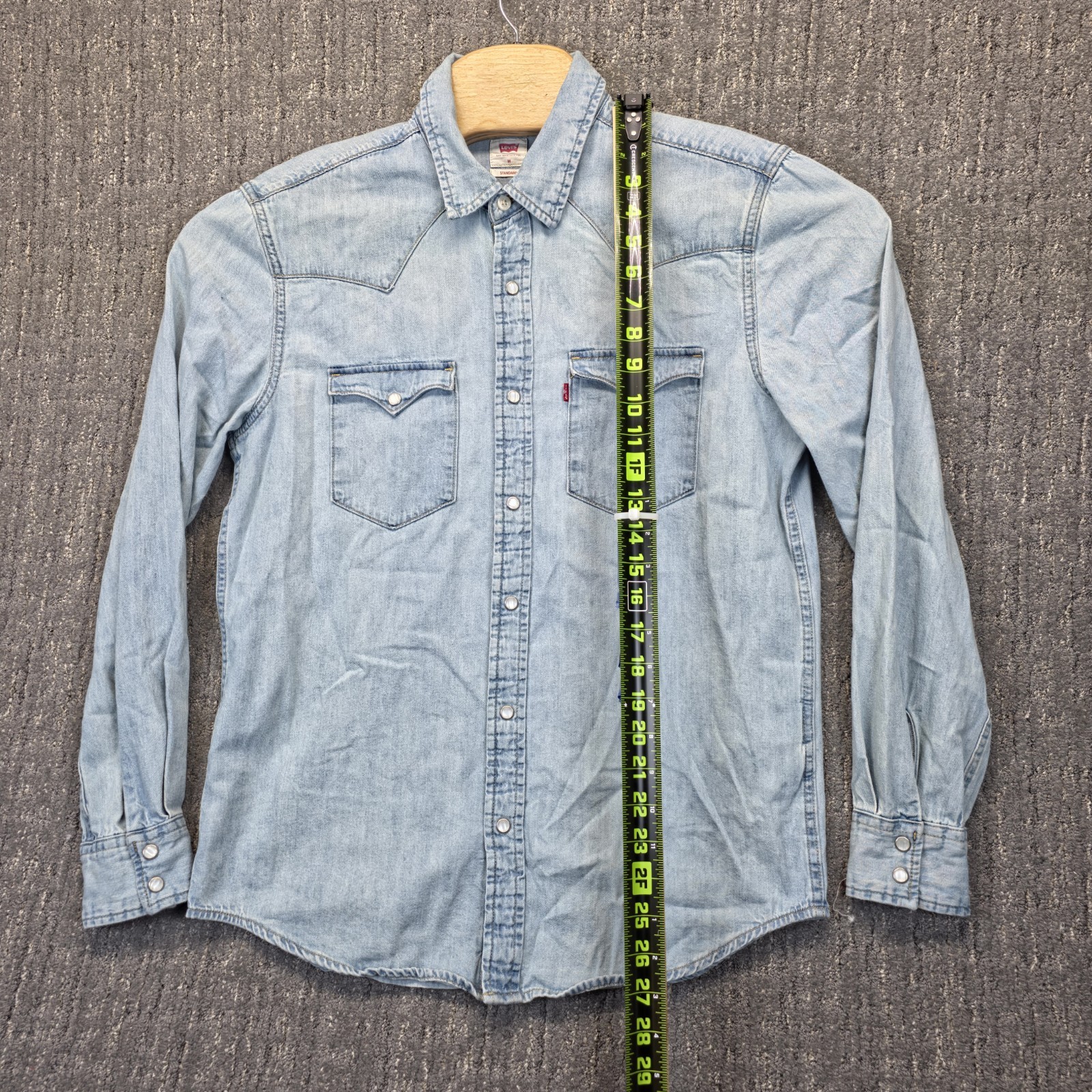 Levi's Western Denim Shirt Mens Medium Pearl Snap Light Wash Standard Fit Cowboy