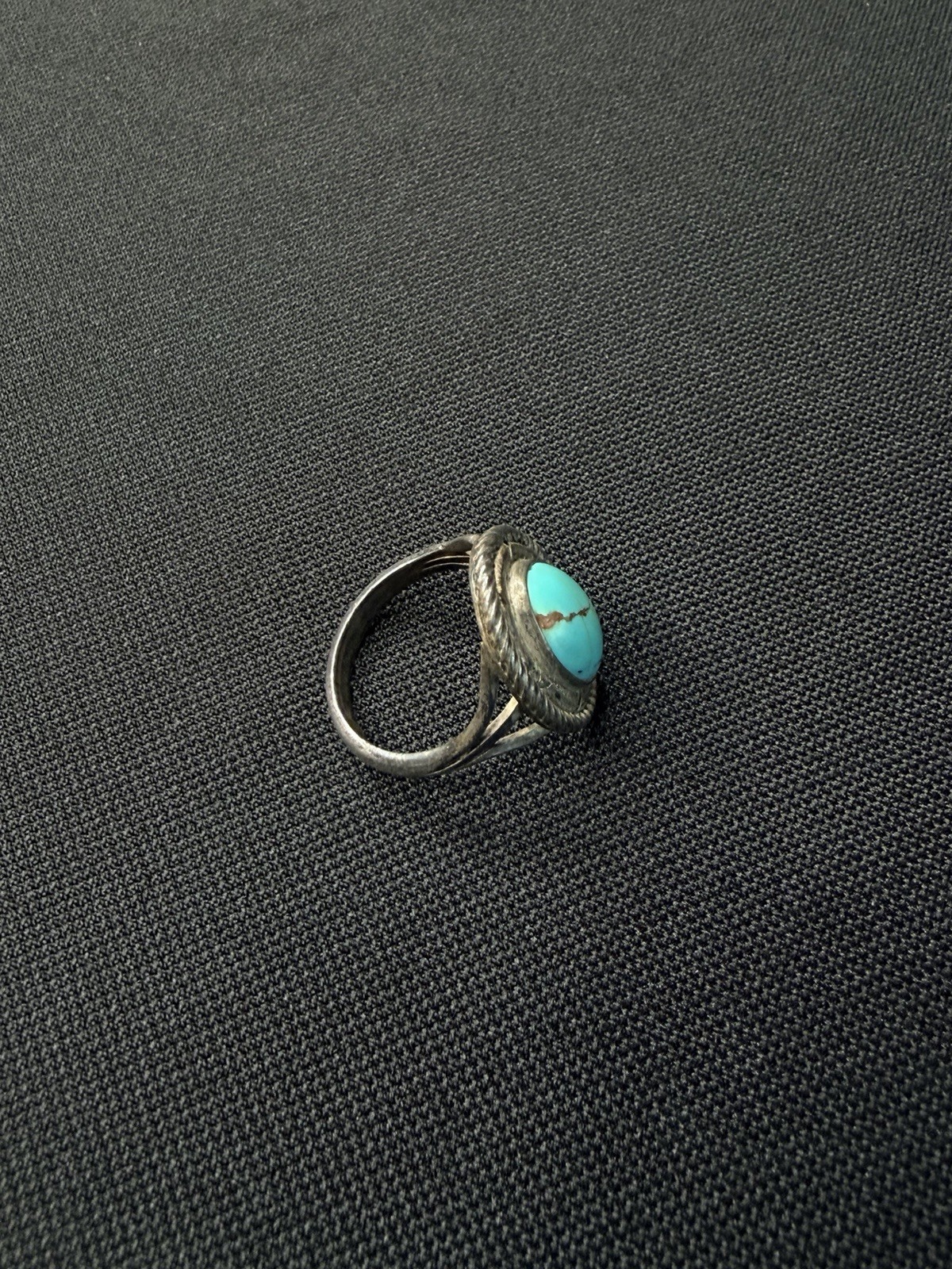 как выглядит Vintage Turquoise Cabochon Ring Sterling Silver Size 6 фото