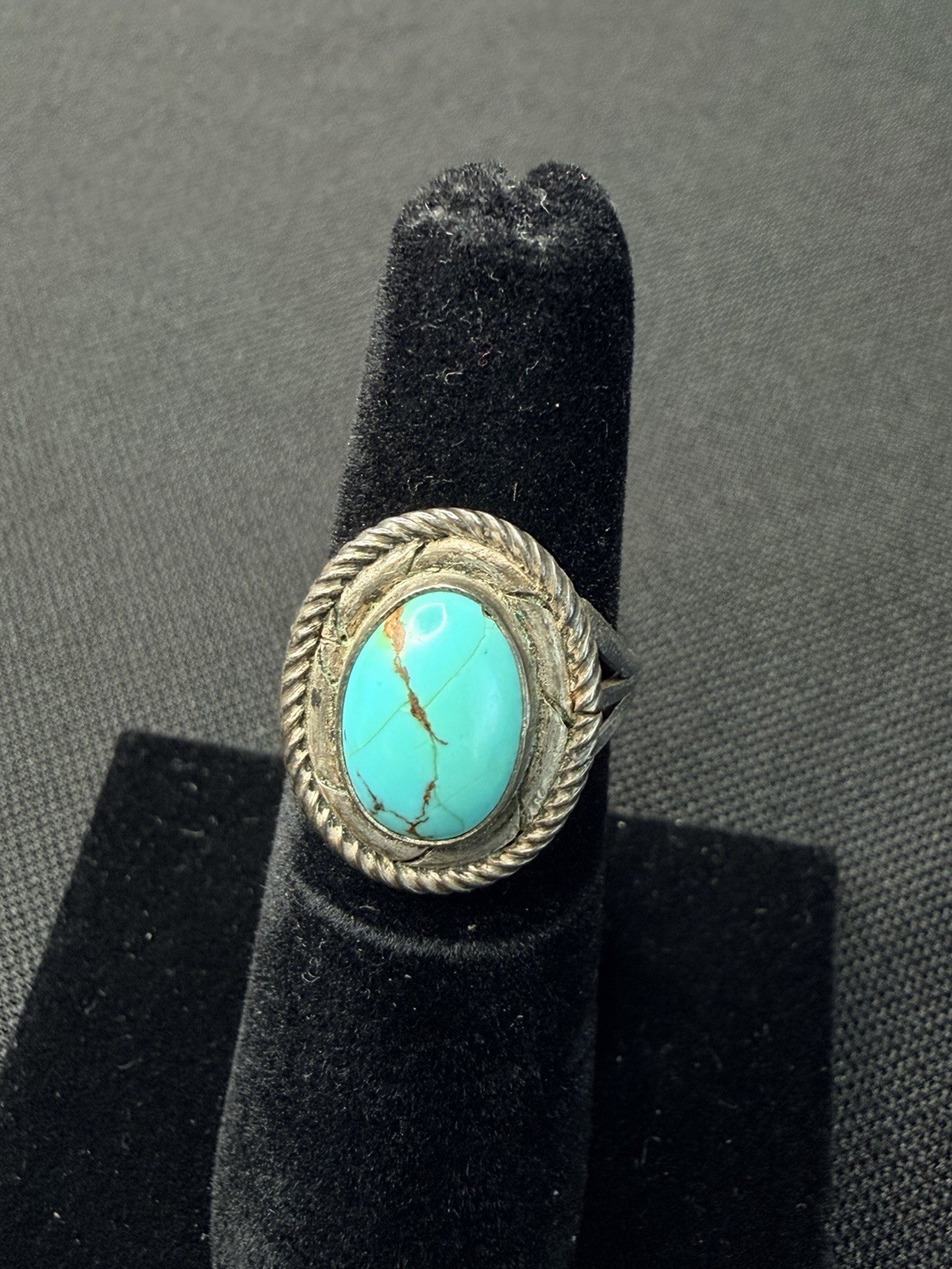 Vintage Turquoise Cabochon Ring Sterling Silver Size 6
