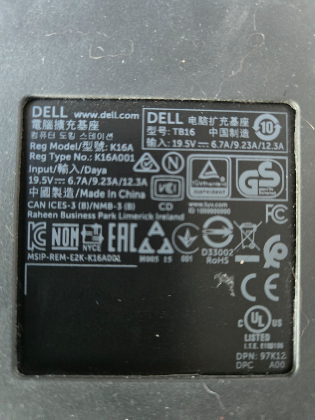 Dell TB16 K16A Thunderbolt Docking Station USB-C - w/ 130W Adapter - Free S/H