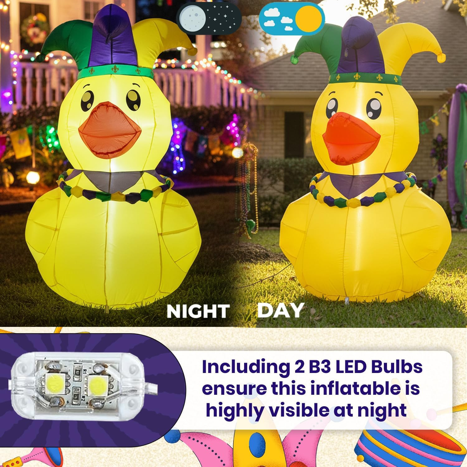 как выглядит 5FT Mardi Gras Duck Inflatable Yard Decorations, Mardi Gras Decorations Outdoor фото