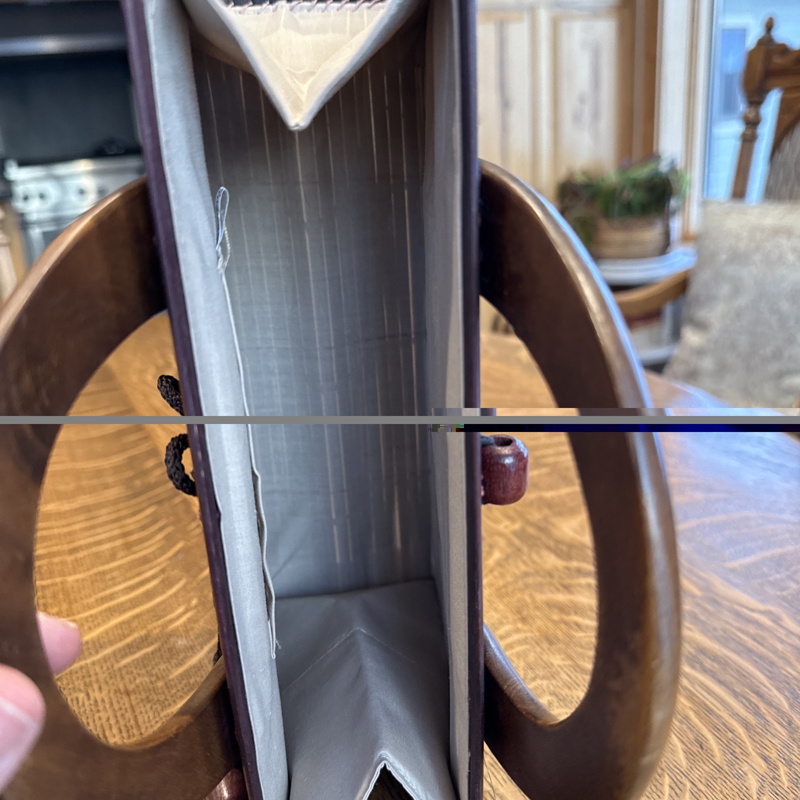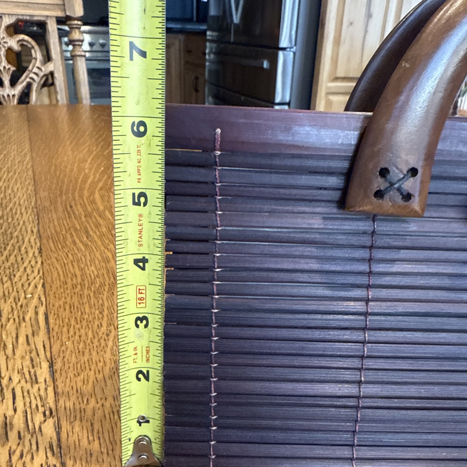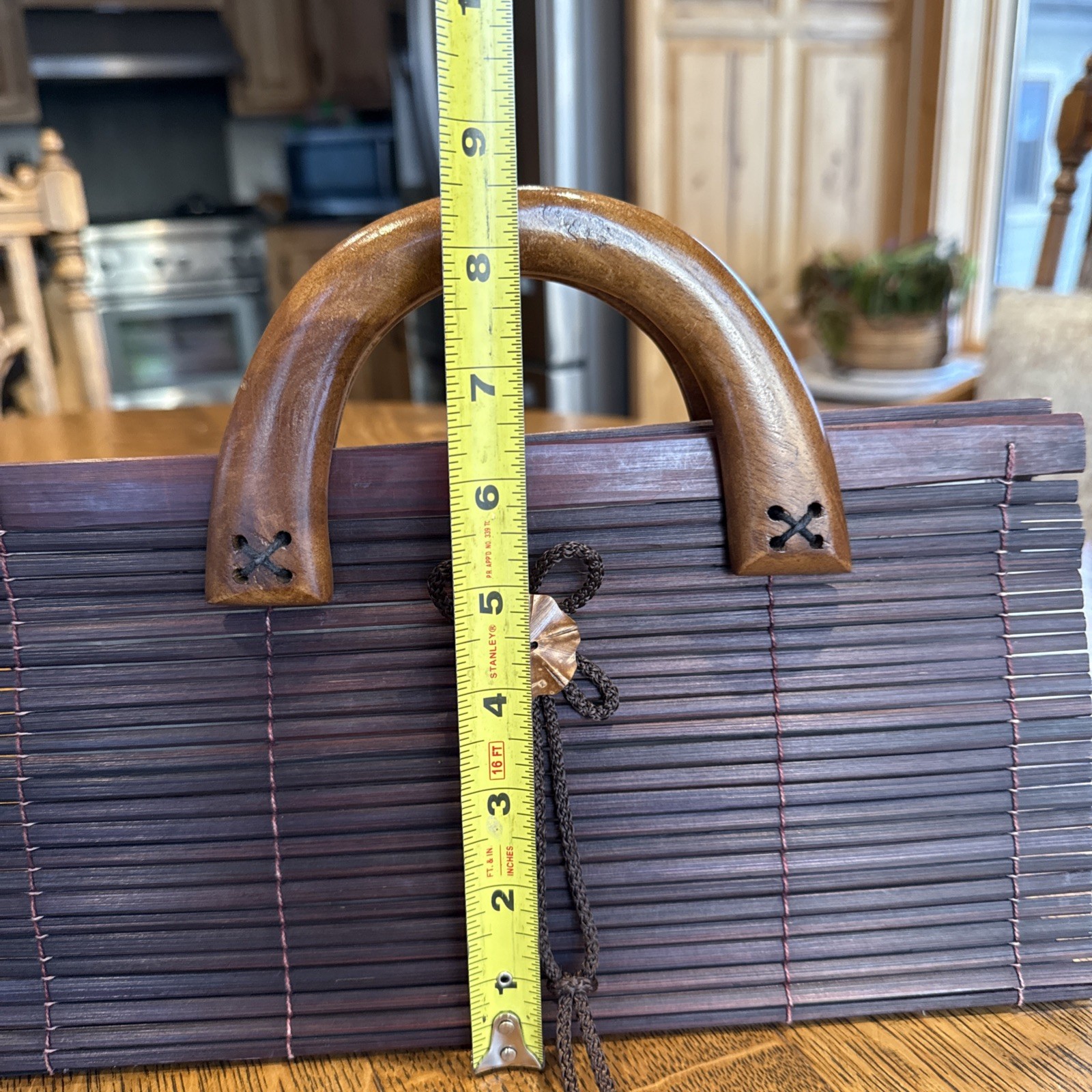 как выглядит VTG. Bamboo Slat Handbag Wood Handles Decorative Loop Flower-button Closure Boho фото