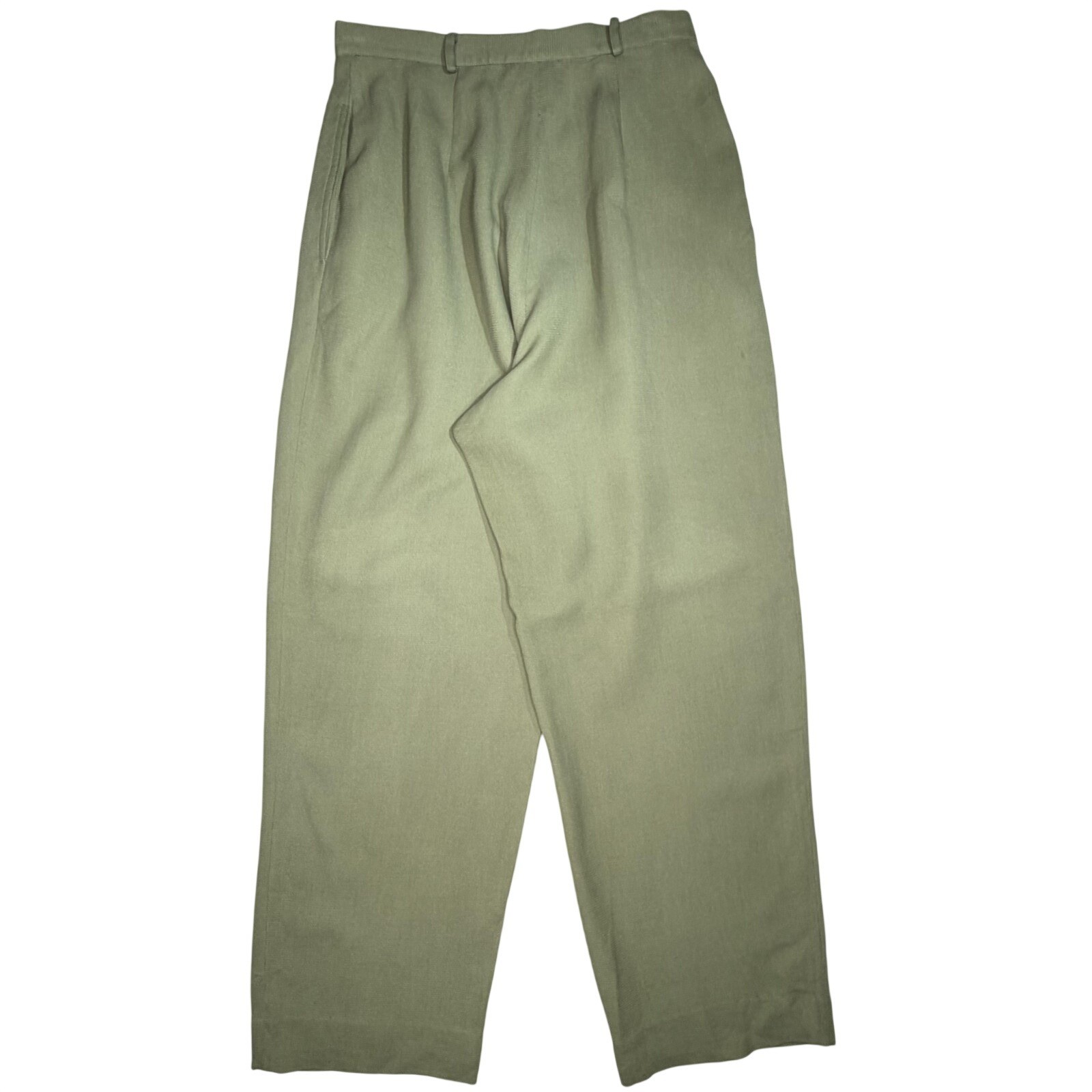 Vintage Casual Corner Pants Womens 8 Green Silk Pleated High Rise Trousers 90s