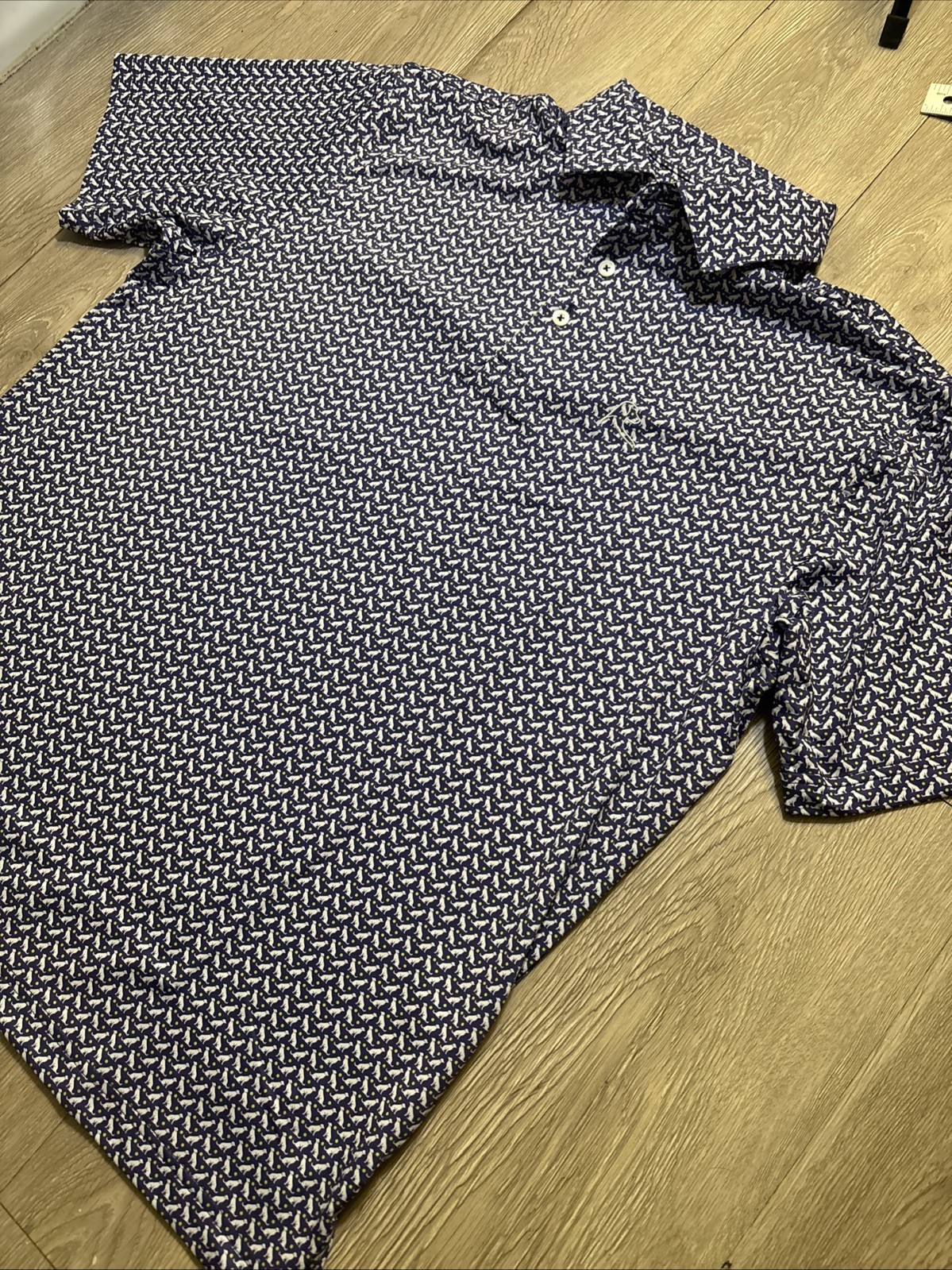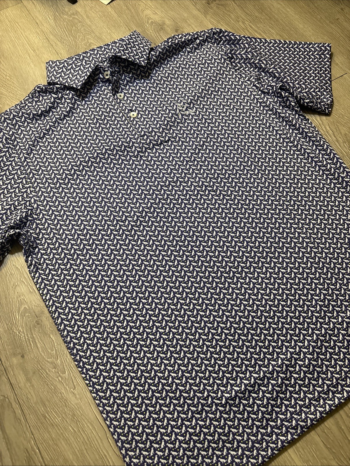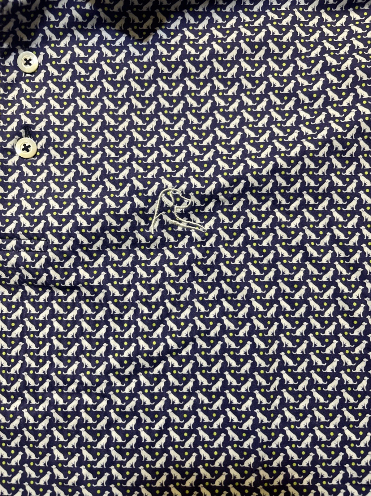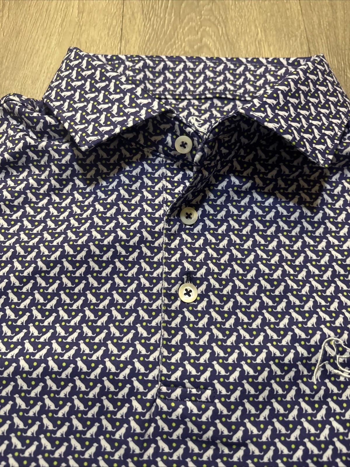 как выглядит RHOBACK Polo Shirt Mens M Blue Dog Pup Tennis Ball Golf Performance Sport фото