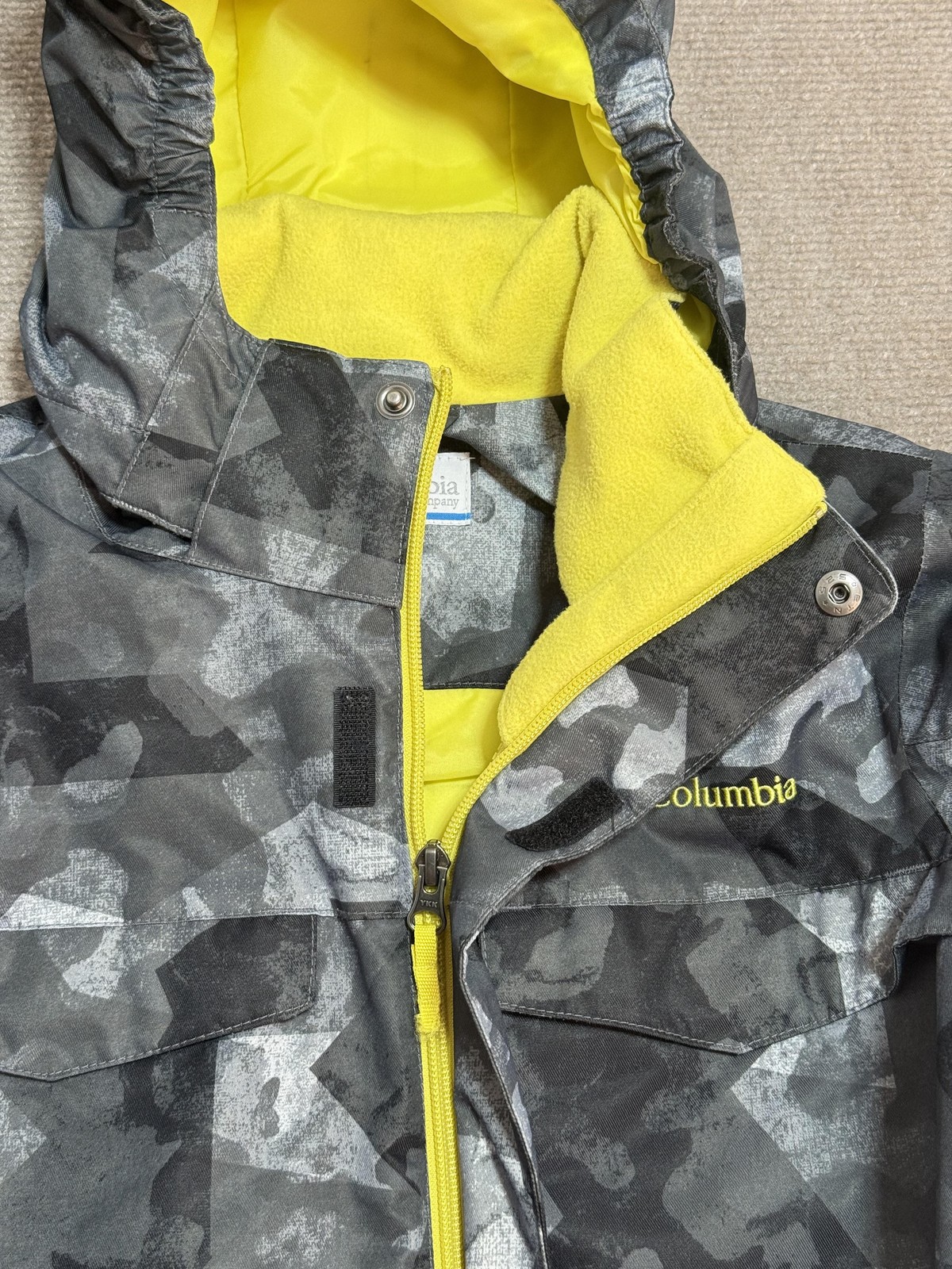 как выглядит Columbia Ski Jacket Youth Medium Gray Camo Interchange Hooded Insulated Winter фото