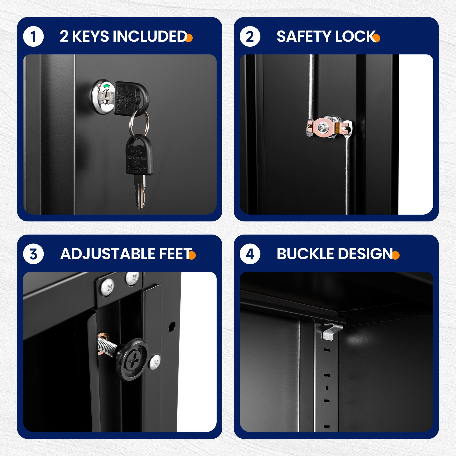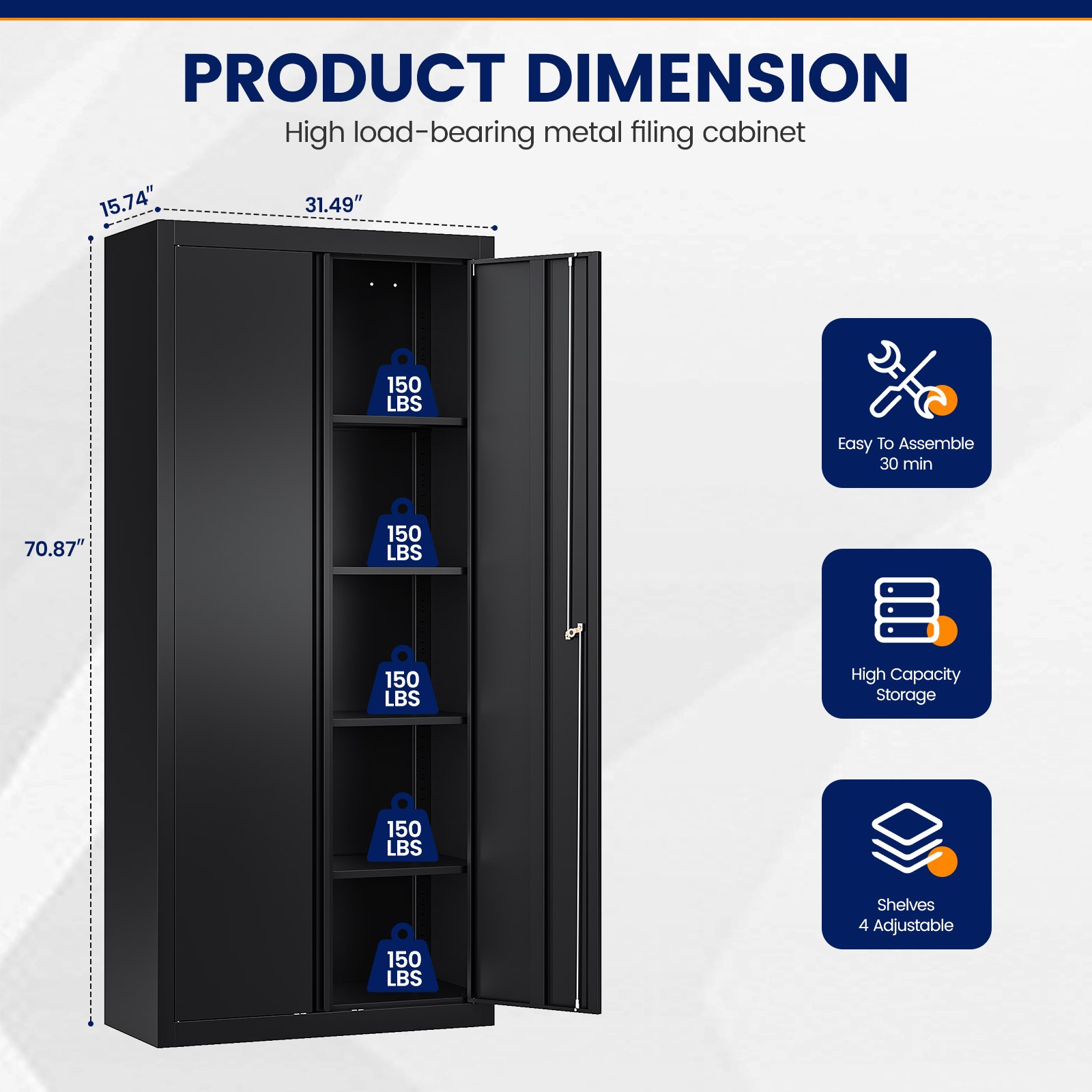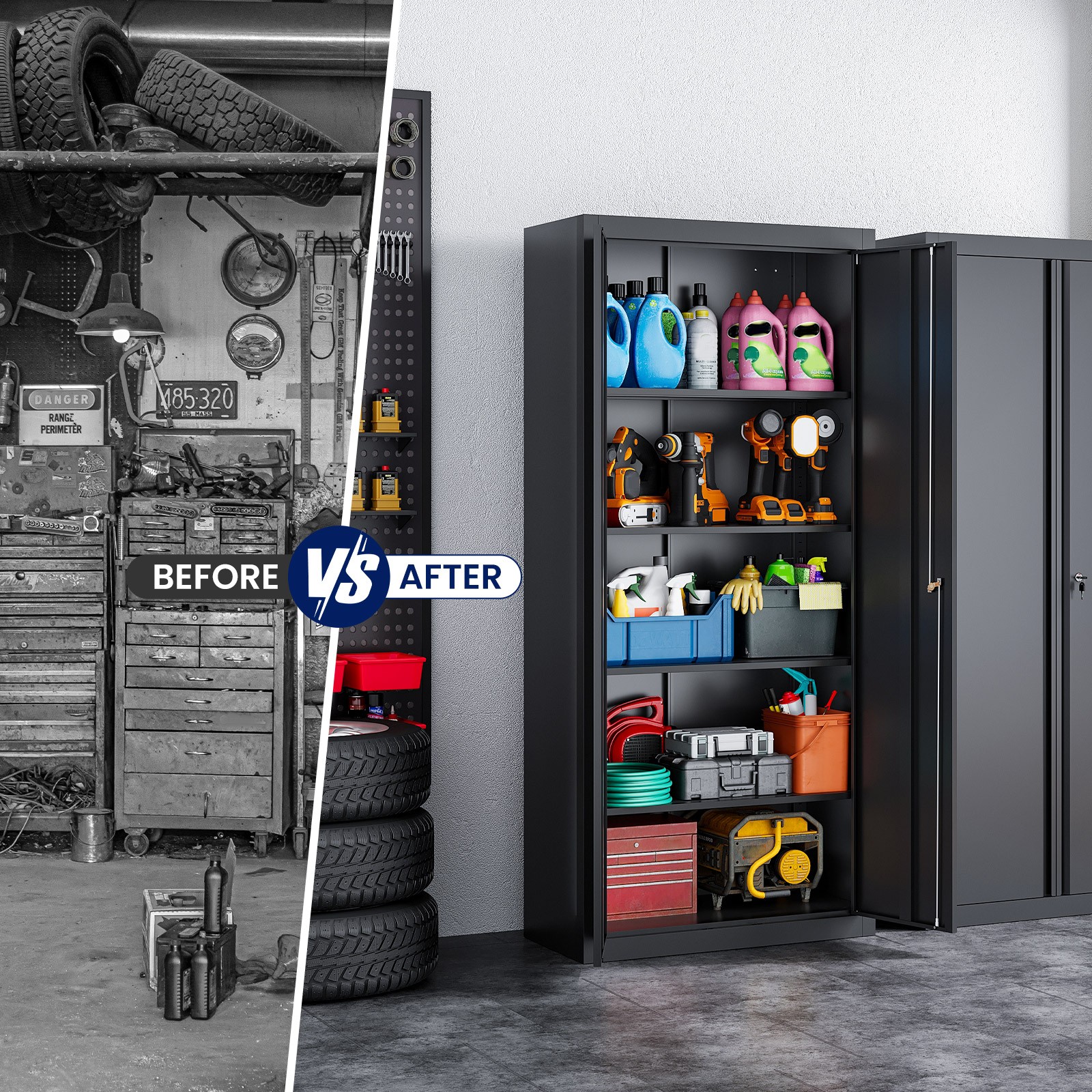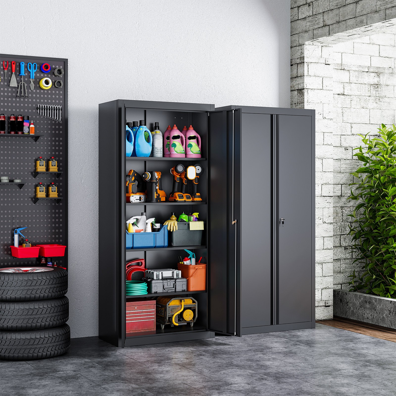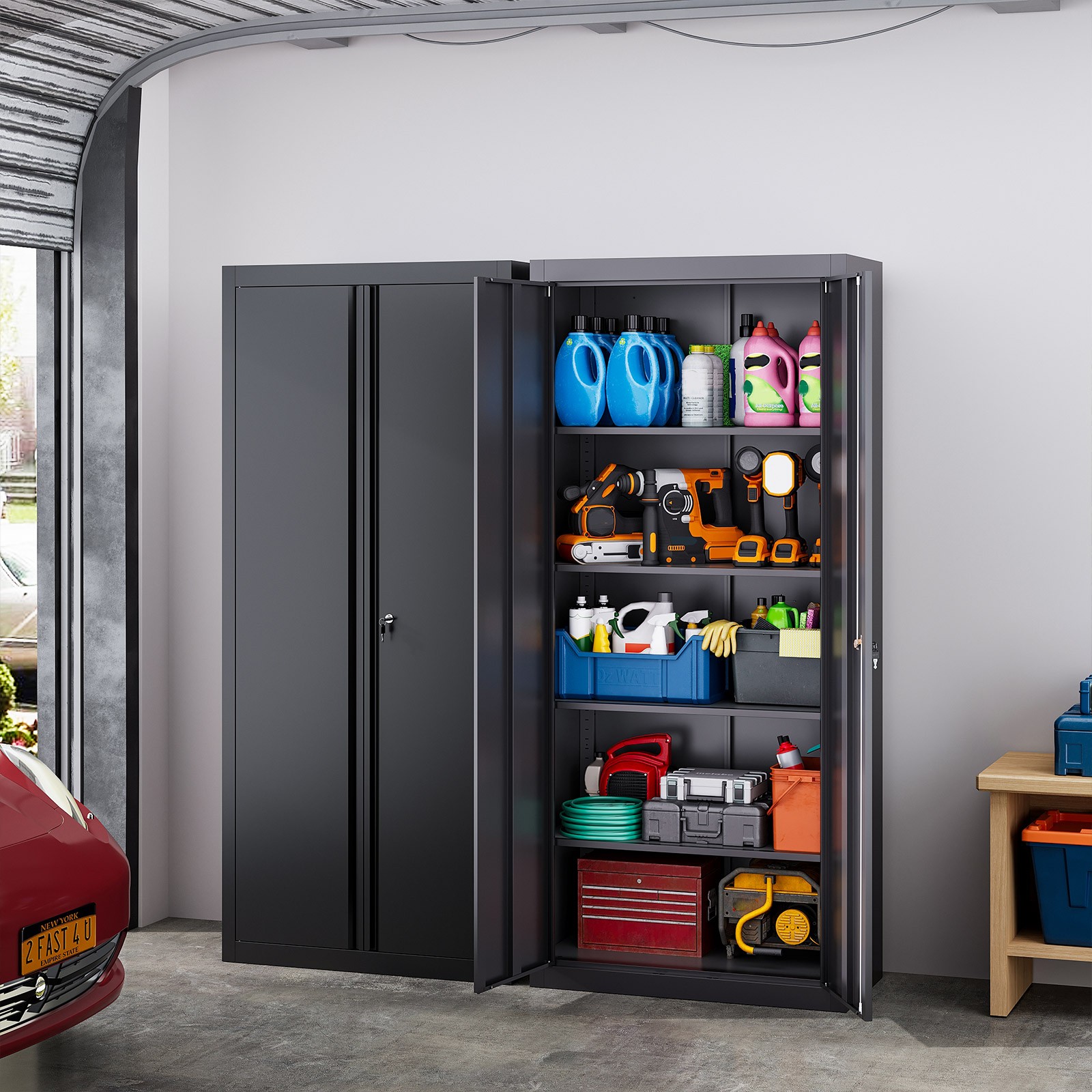 71 Locking Steel Storage Cabinet with 2 Doors 4 Shelves for Garage, Home