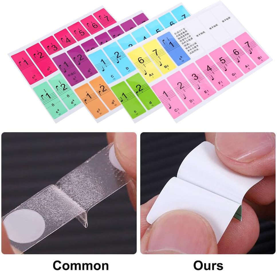 Removable Piano Stickers for 49/61/76/88 Key Keyboards Multicolor Labels for B