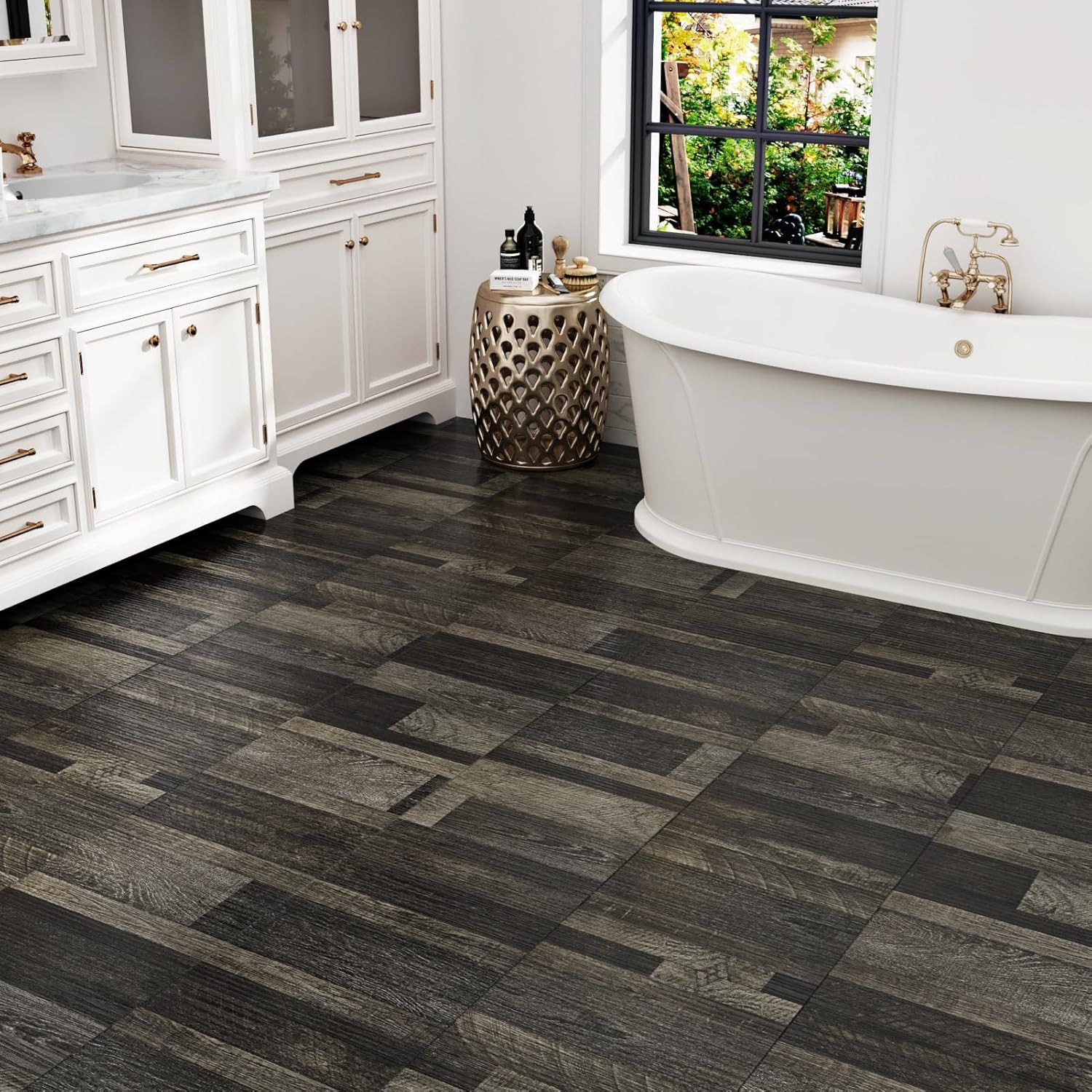 Dark Brown Peel Stick Vinyl Floor Tiles 12x12 Waterproof Self Adhesive 5PCS