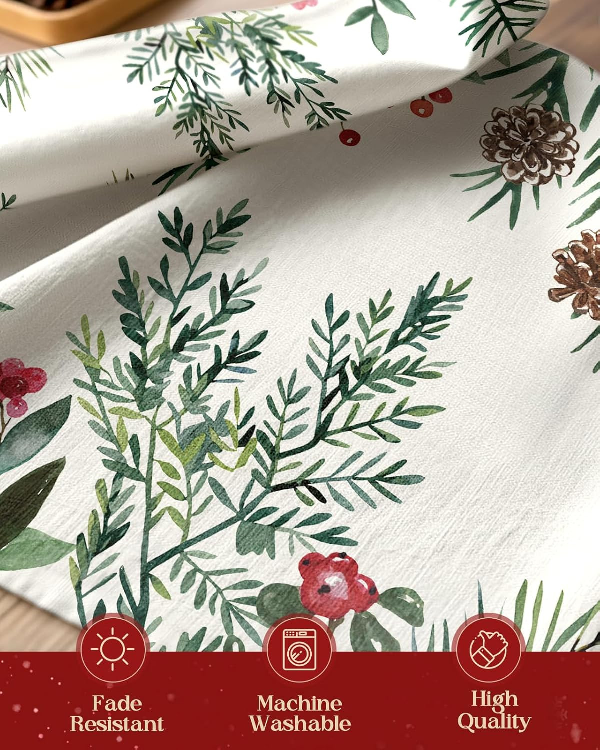 как выглядит Christmas Holly Berries Table Runner 13x72 Watercolor Winter Rustic Decor фото