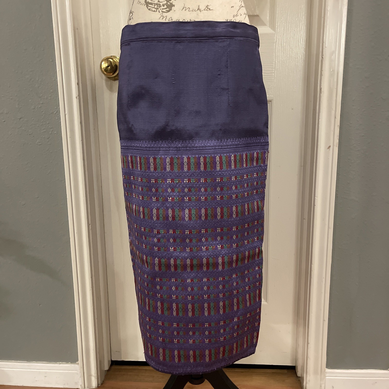 как выглядит Lao Thai Khmer Traditional Skirt purple silver adjustable waist фото