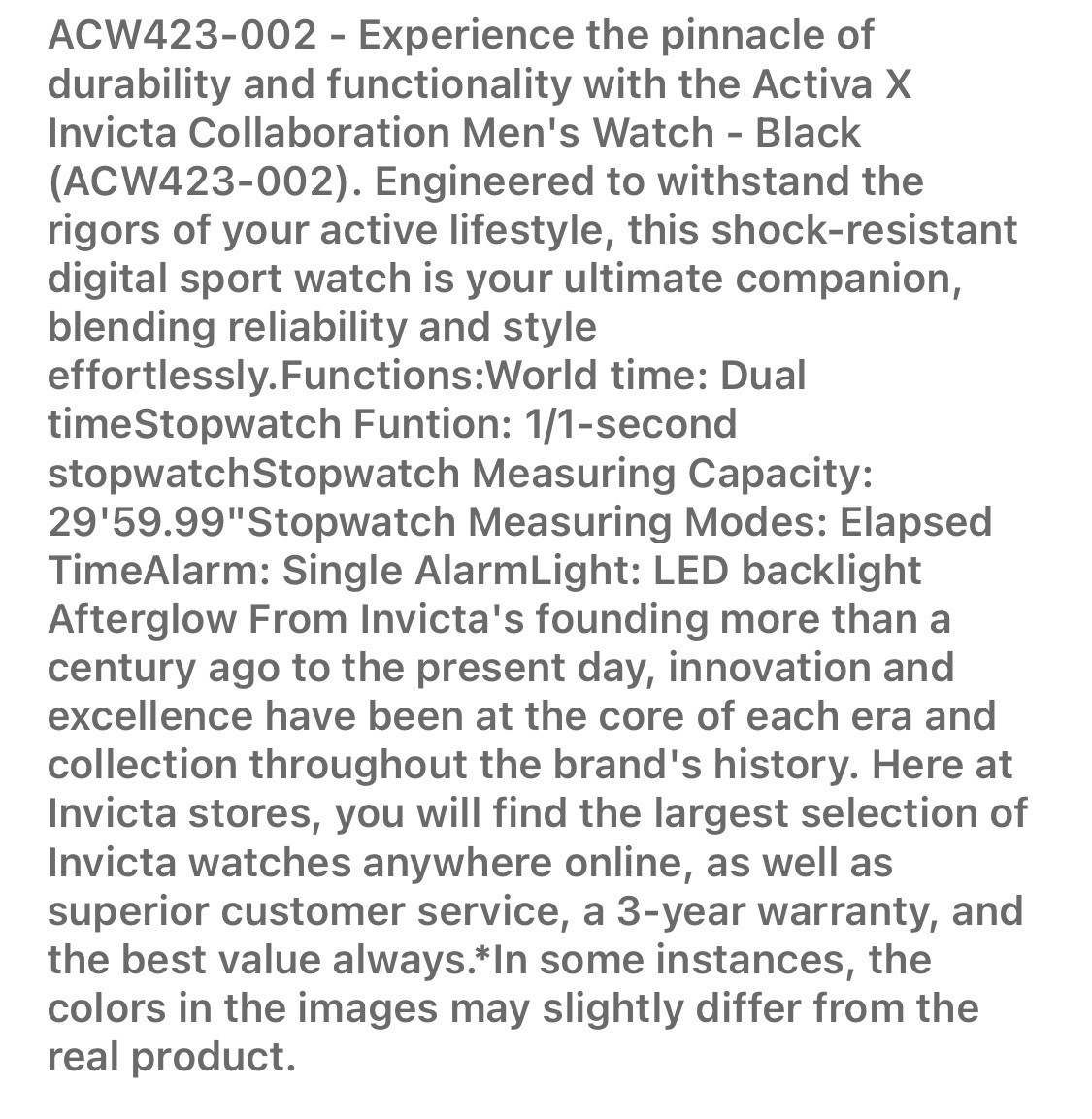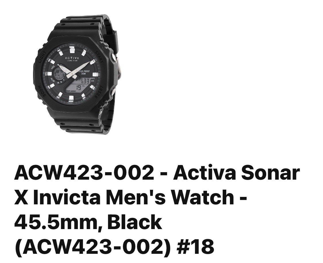 как выглядит Activa Sonar X Invicta Mens Watch - 45.5mm, Black ACW423-002 NEW фото