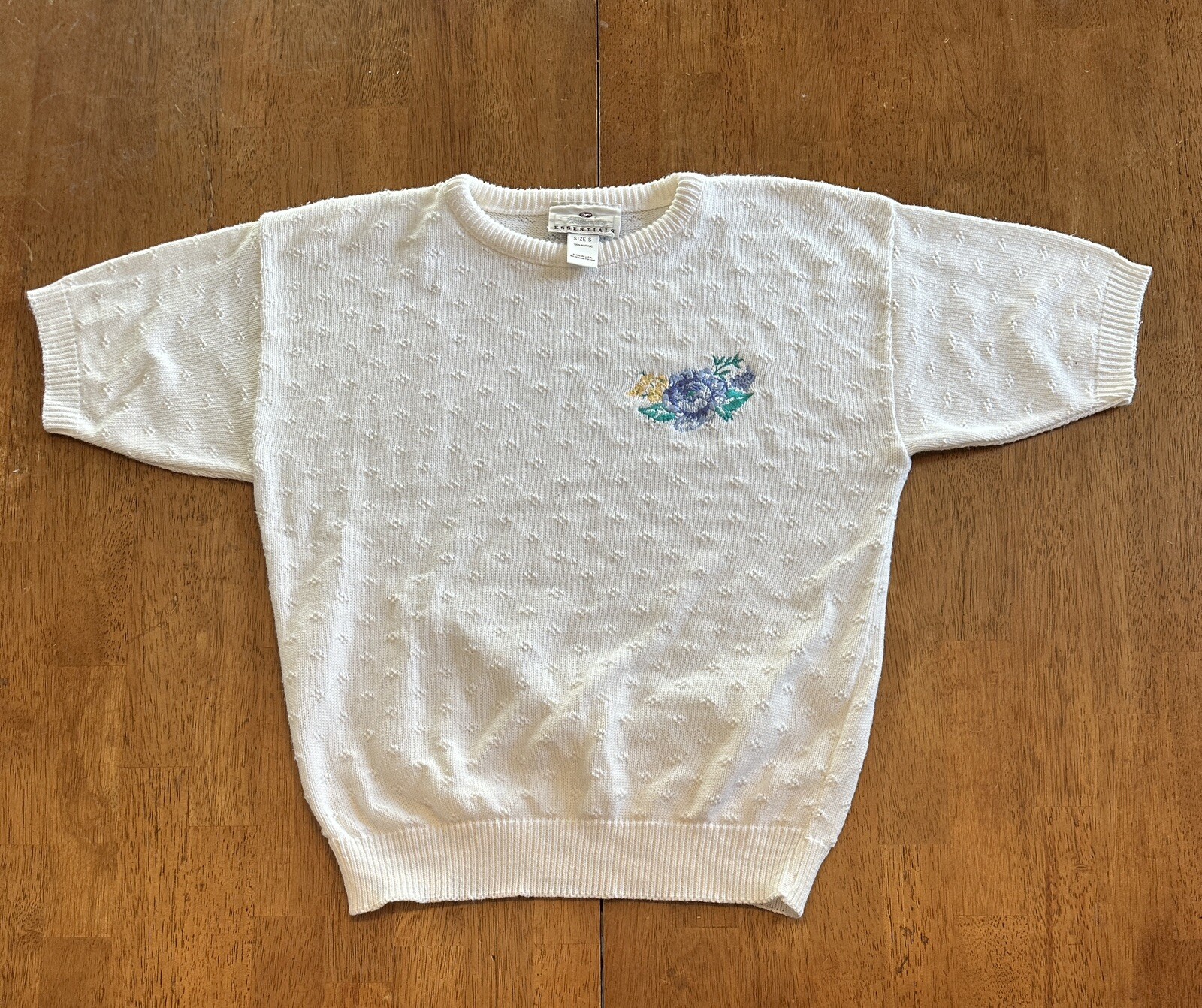 как выглядит Vintage Worthington Essentials Short Sleeve Knit Sweater Acrylic Small Floral фото