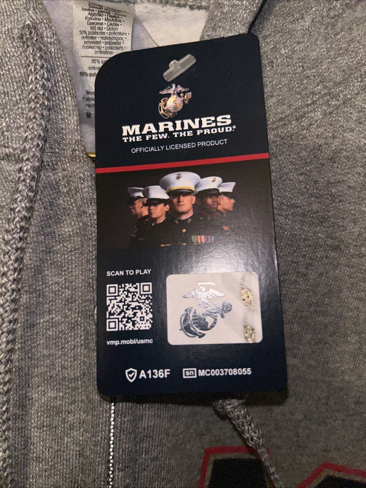 USMC Sweatshirt Mens Grey Hooded Full Zip Marine Corps Officially Licensed Med