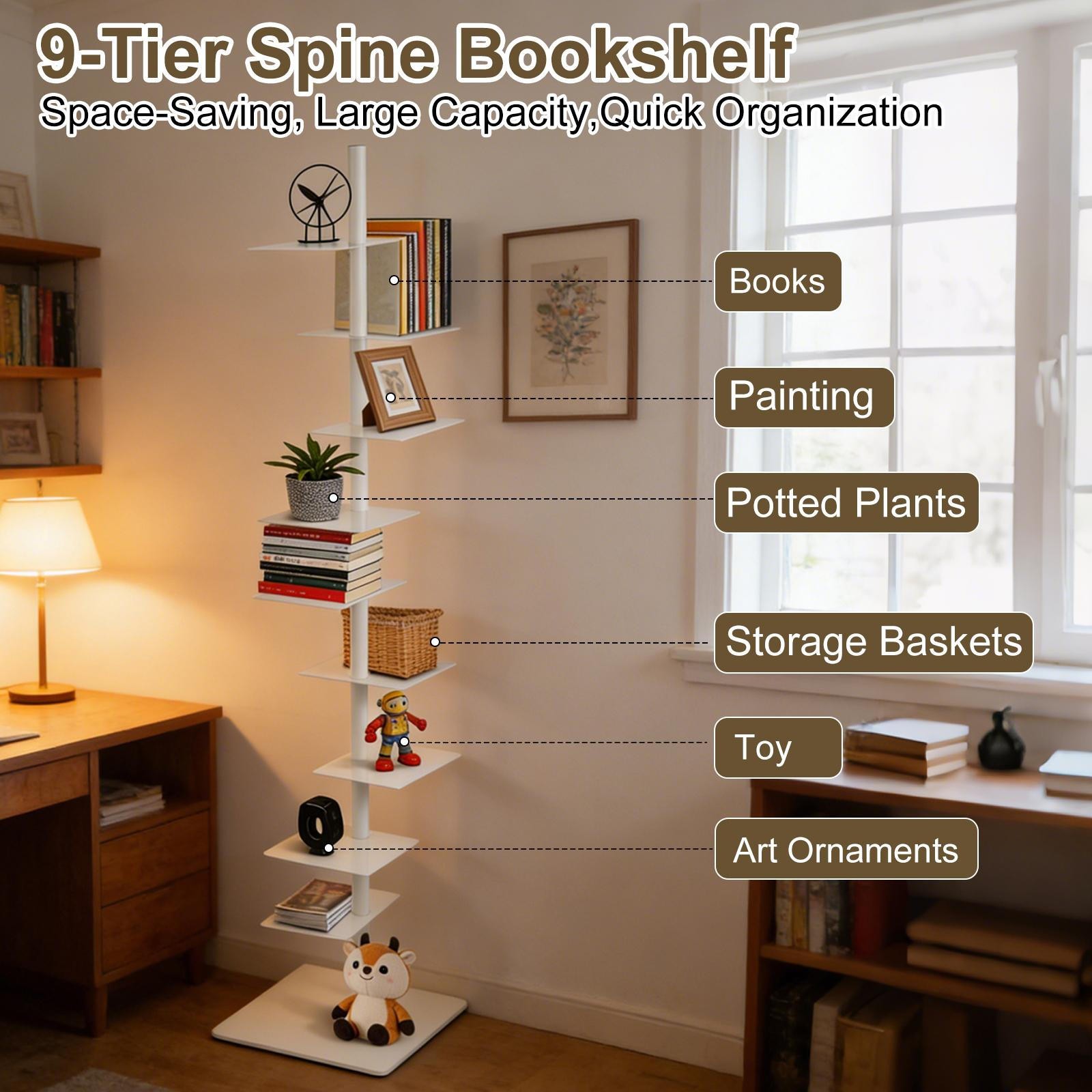 NEW 9-Tier Metal Bookcase Book Organizer Rotating Spine Bookshelf Book Tower
