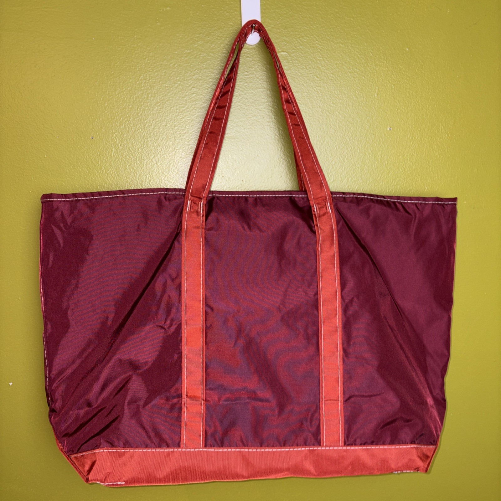 Vintage LL Bean NYLON Boat Large Tote Bag Zipper Burgundy Stripe Rare