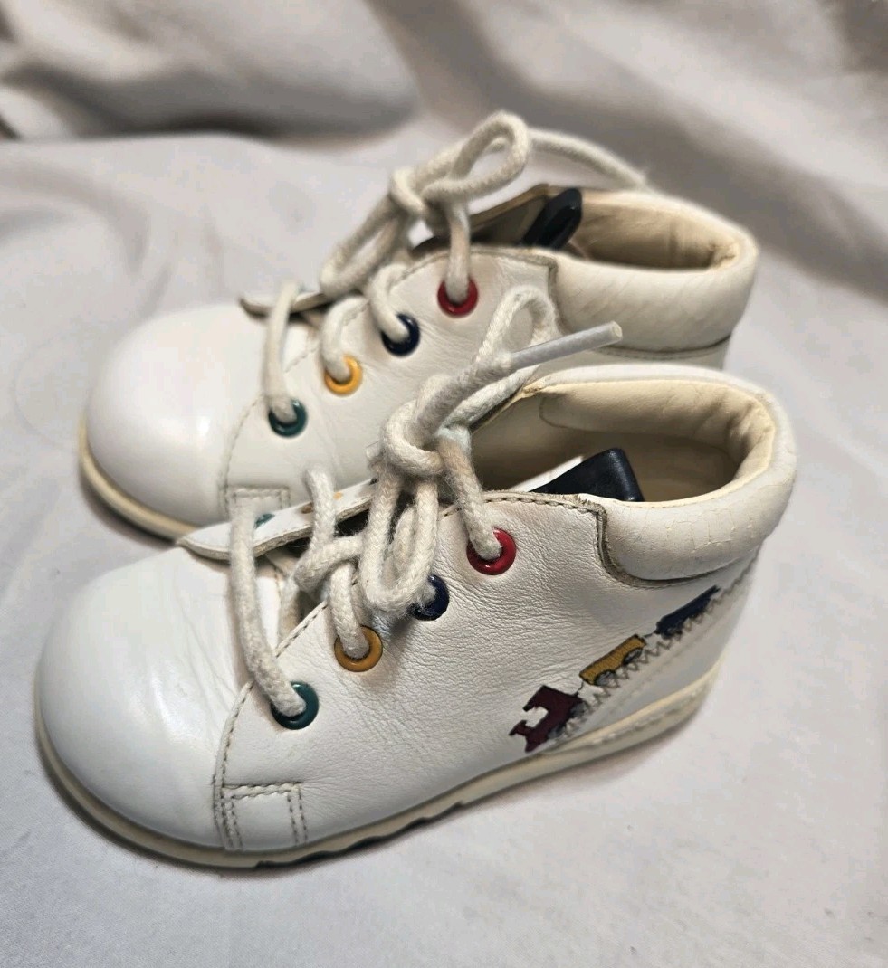 как выглядит vintage stride rite baby shoes Size 5 White Trains Leather фото