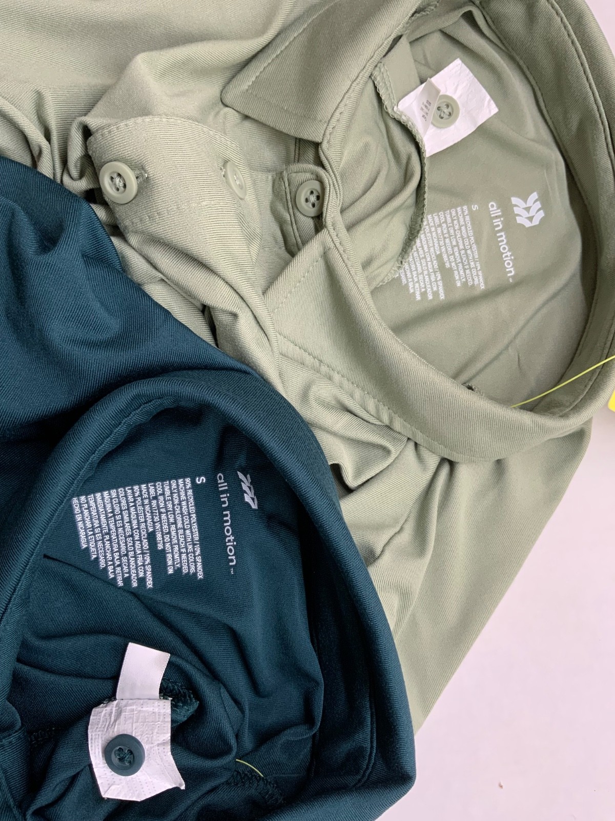 как выглядит Jersey Polo Shirt All in Motion Wicking Stretch No Roll Collar Dark Teal or Sage фото