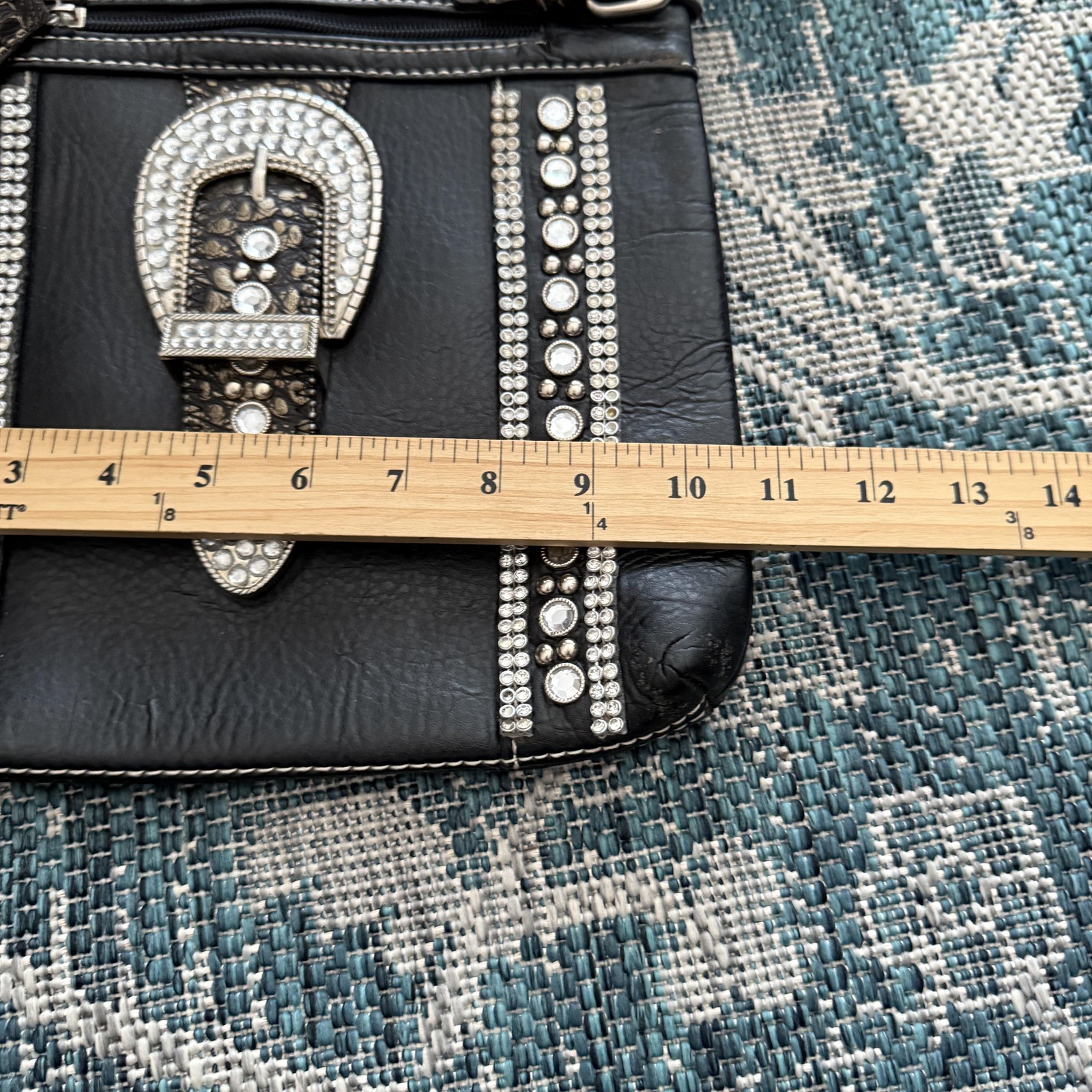 Western Crossbody Purse Womens Silver Buckle Rhinestone Studded Cowgirl Bag