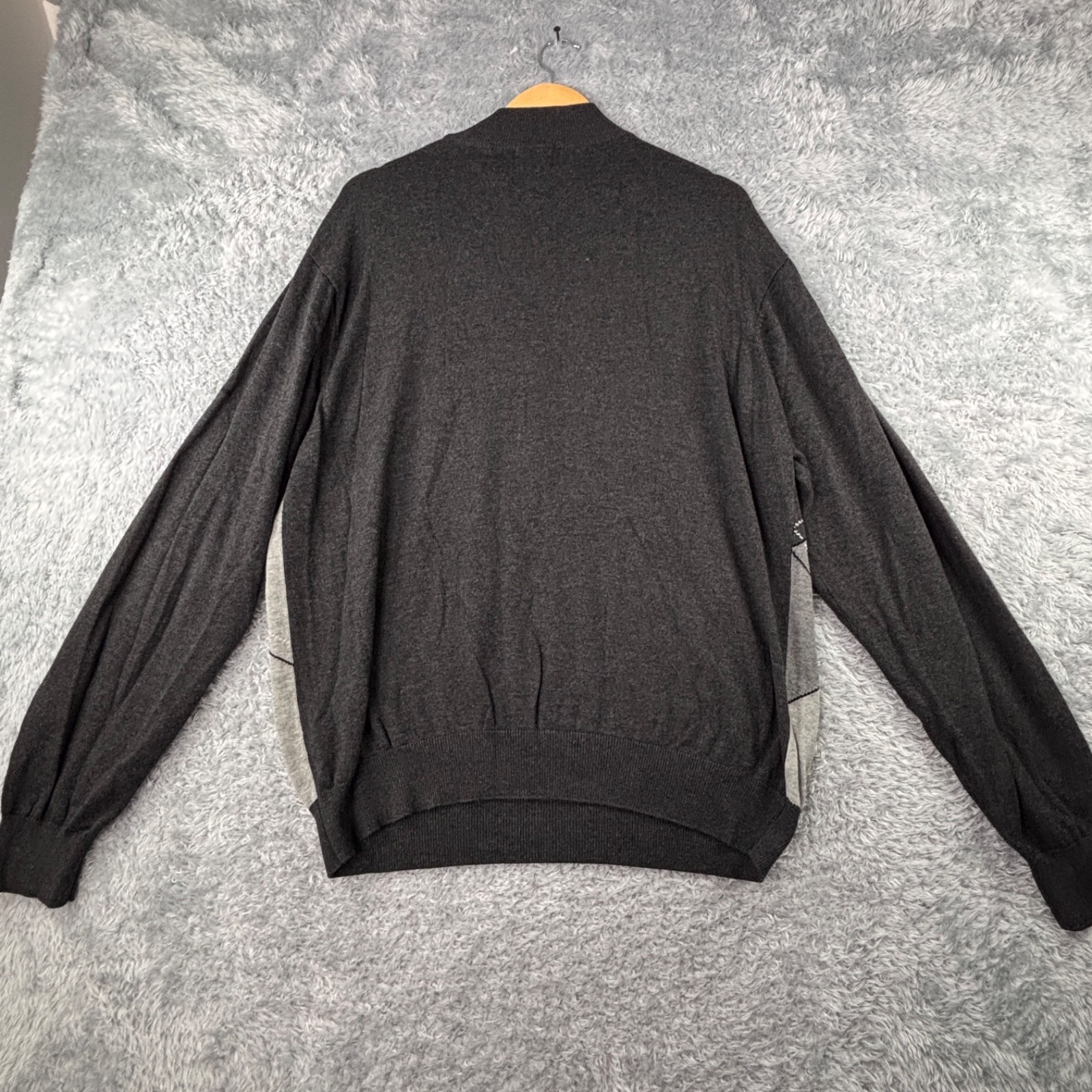 Greg Norman XL Men's 1/4 Zip Golf Sweater Pullover Charcoal Gray Argyle Cotton